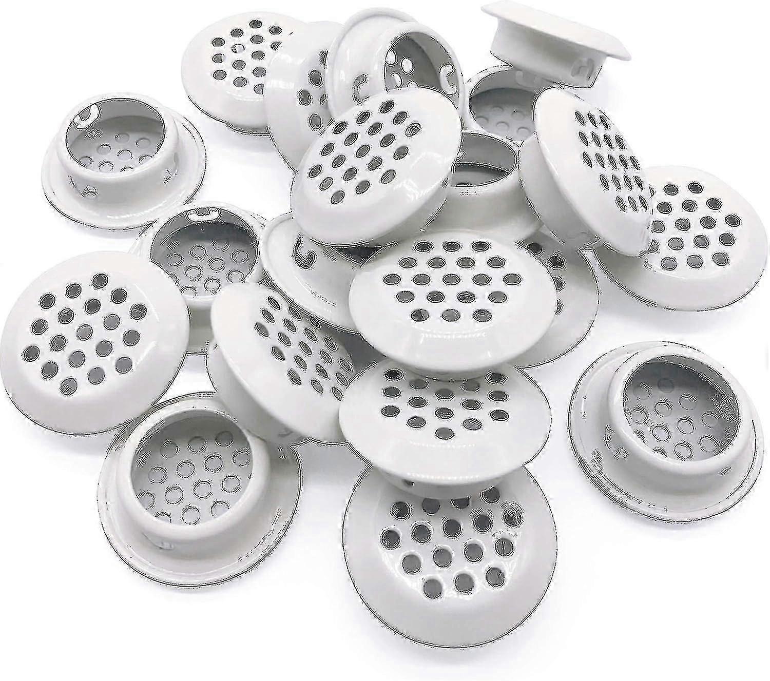 New Arrival 20pcs Stainless Steel Round Vent Mesh Hole Louvers for Kitchen & Bathroom Cabinets & Wardrobes - 25mm Circular Soffit Vents (White)