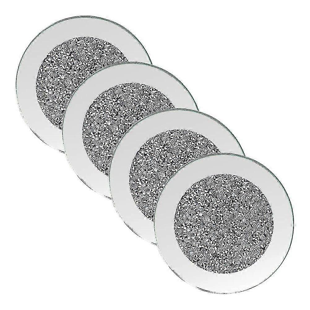 4 Pcs Glass Mirrored Coasters with Crushed Diamond Design for Tabletop Decor in Restaurant, Kitchen & Bar - New Arrival
