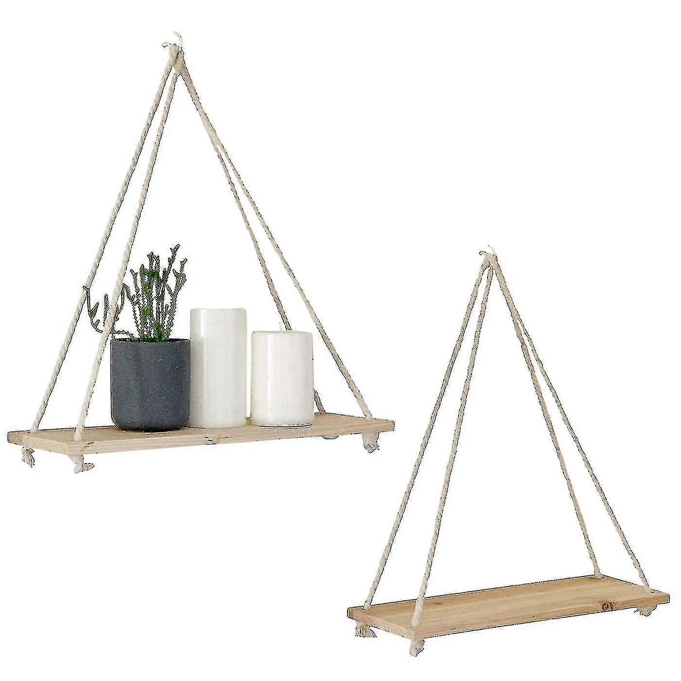 Wooden Rope Wall Swing Plant Pot Tray with Floating Shelf: Scandi Style Home Decor (New)