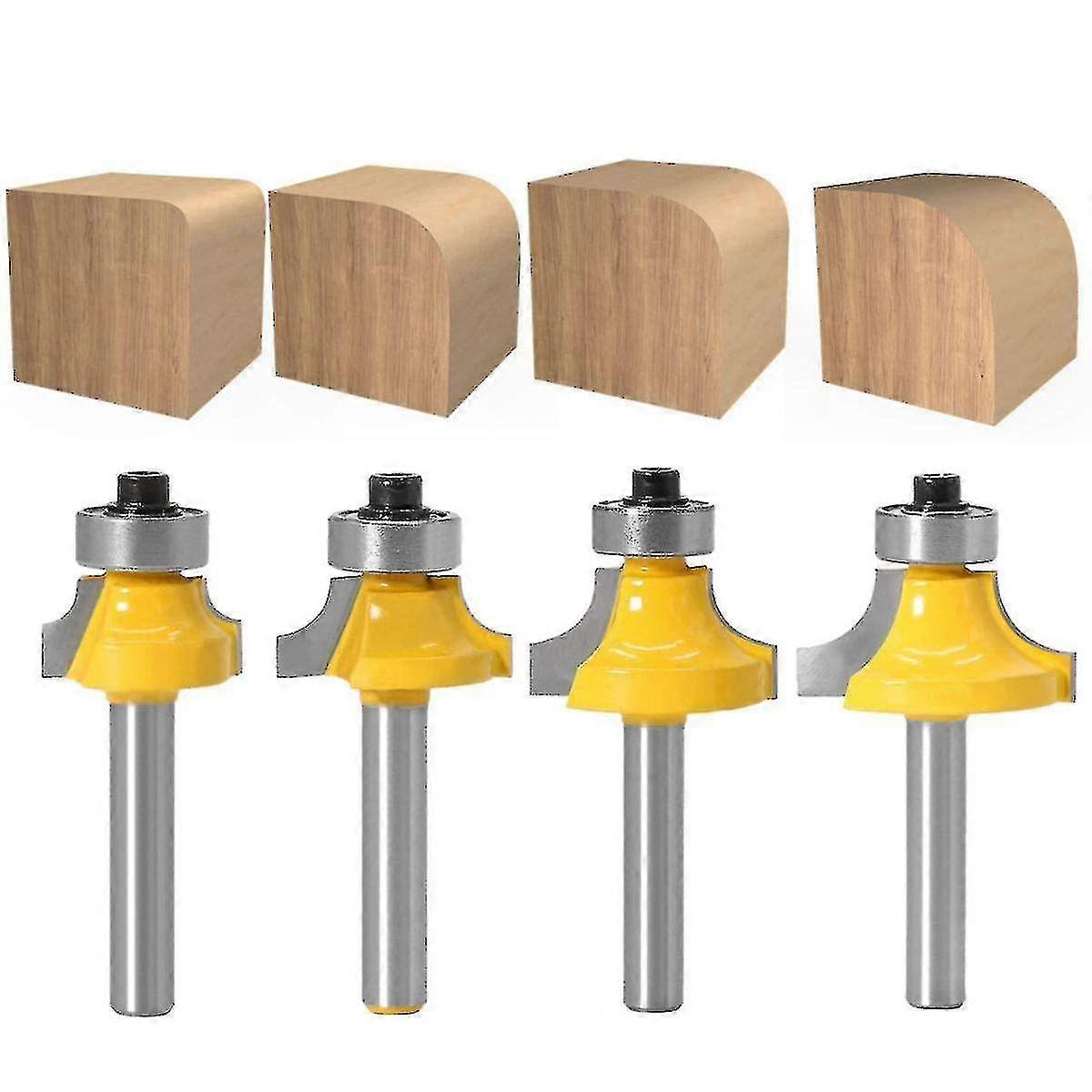 New Arrival Set of 4 Round Edge Round Cutters with 6mm Shank Carbide Router Bits - with Bearing and High Performance