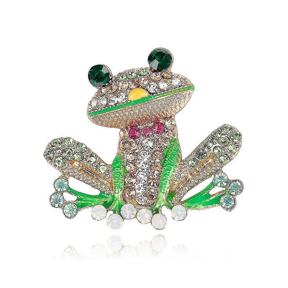 Green Enamel Crystal Frog Charm Animal Brooch Pin, A New Arrival Gift