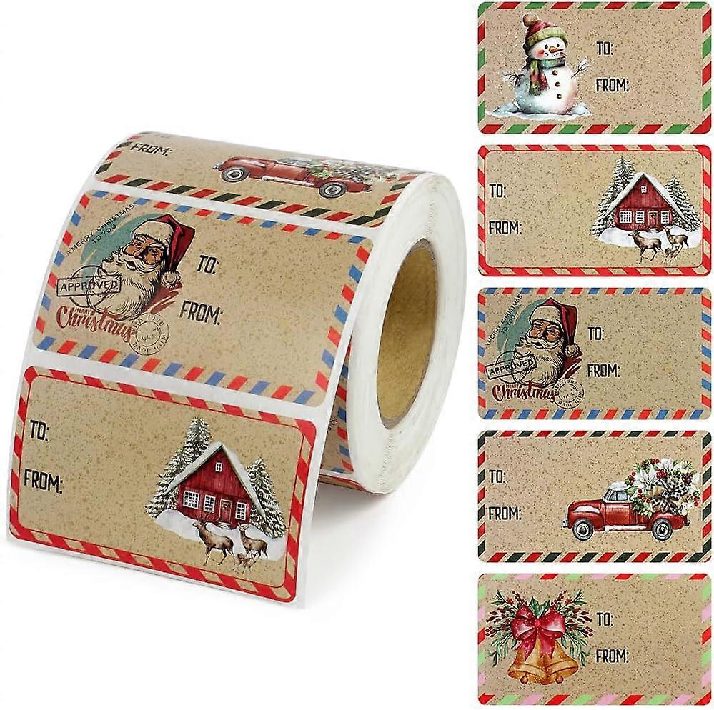 Vintage Stamps - 300PCS Self-Adhesive Merry Christmas Name Tags for Presents, Labels in Boxes, Bags, Envelopes, Card-Making and Package Decoration