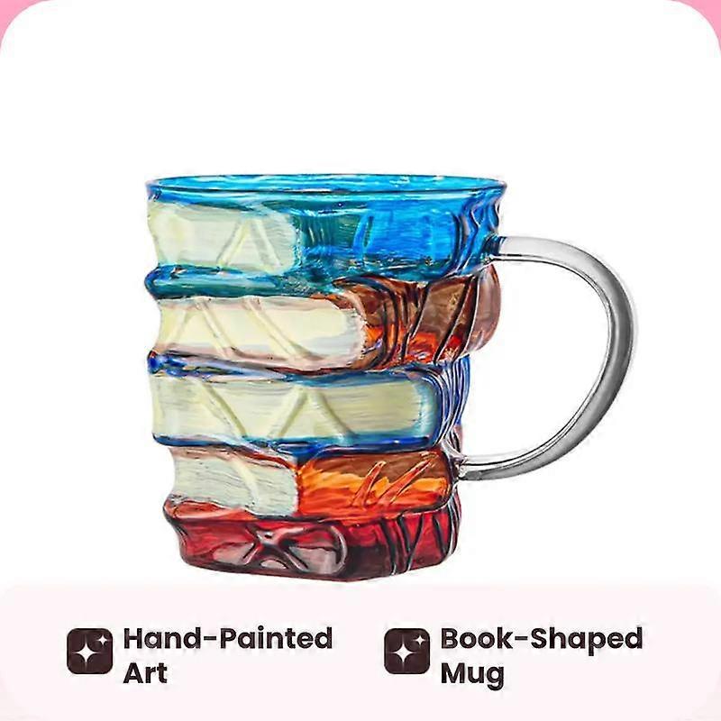 Painted Book Mug Coffee Cup High Borosilicate Artificial Coloring Unique Book Cup Mug, Pet Material, Novelty Drinkware