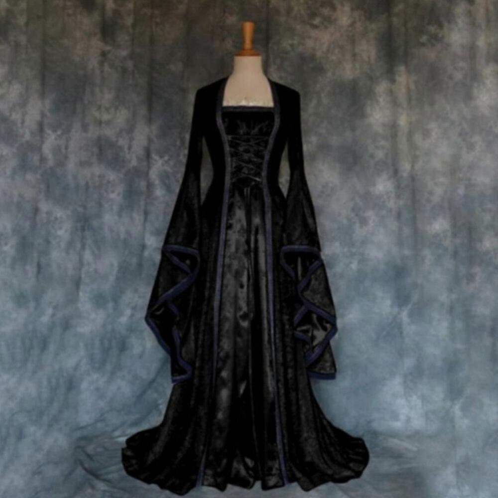Women Medieval Midi Dress Gothic Cosplay Costume Halloween Gown Dress Plus Size