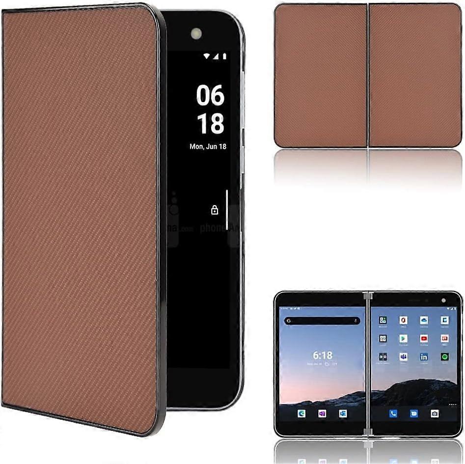 Smartphone Flip Case Compatible with Microsoft Surface Duo, Ultra-Thin Leather Shockproof PC+PU Protection Folio Case (Brown)