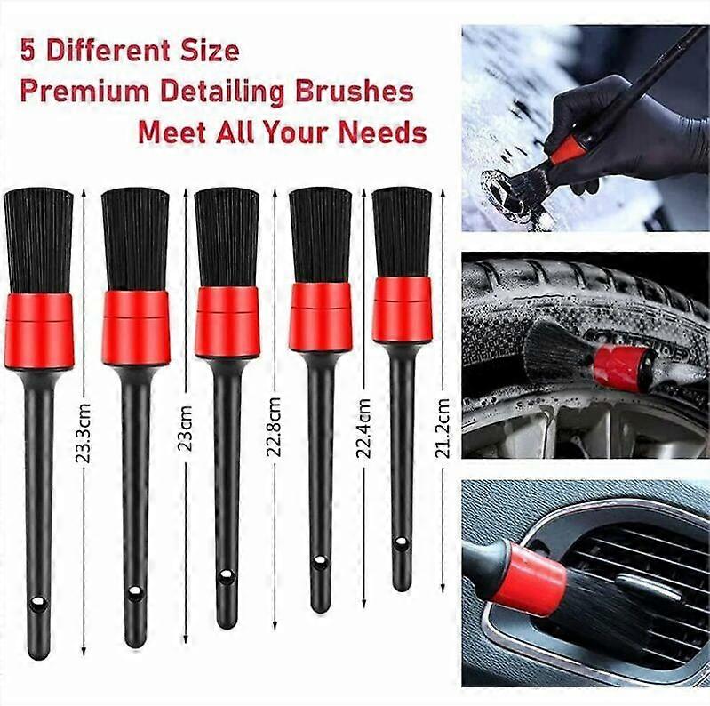 Högkvalitativ bilrengöringsborste, tillverkad av torrt material: vildsvinsborst blandat med syntetiska fibrer. Hål för att hänga handtaget. Håll din borste nära till hands och lätt att använda med upphängningshål. Handtag upphängt. Borsten är mjuka, starka och flexibla för att ta bort smuts på trånga ställen utan att repa bilens yta. De finns i 5 olika storlekar för att möta dina olika rengöringsbehov.   Sofistikerad design Plastborstar avlägsnar envis smuts, smuts och bromsdamm från känsliga hjul och fälgar Handtagsformen ger ergonomisk komfort Kraftfull rengöringskraft och utökad borstning utan trötthet.   Använd kit 5 * mjuka bilrengöringsborstar i olika storlekar 3 * elektriska borstfästen 1 * bilfälg / hjulborste 1 * bilklimatborste 2 * bilpoleringsplatta. 1 x Mikrofiberbiltvättvante. 1 x Mikrofiberbilduk. Det perfekta bilrengöringskitet för alla dina rengöringsbehov.   Brett användningsområde Våra 15 bilrengöringskit är lämpliga för bilrengöring. Lastbil. Husvagnarna. Båtar. Cyklar. Motorcyklar, etc... Du kan använda den för att rengöra interiören och exteriören, såsom hjul, däck, fälgar, emblem, vindrutor, etc. Motor. Ram. Stötfångare. Instrumentpaneler. Hud. Mattor och klädsel.