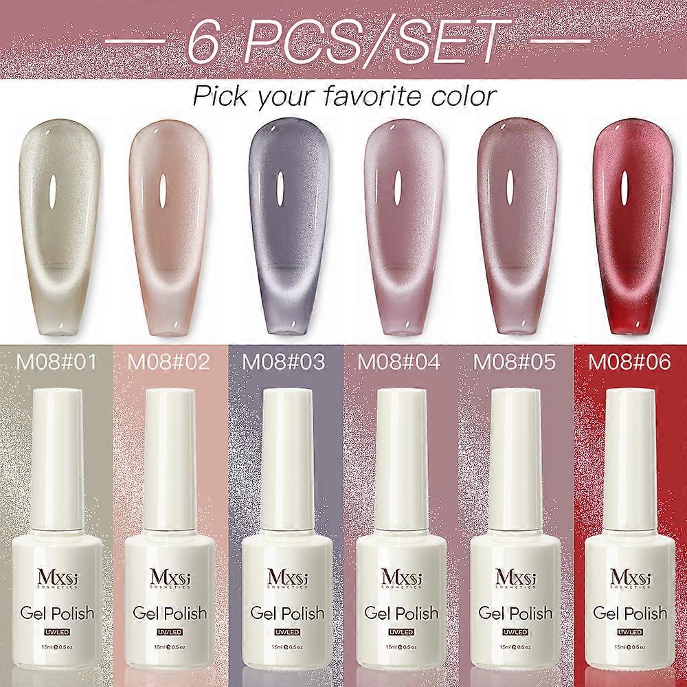 6pcs Mint Green Color Cat Magnetic Gel Nail Polish Set Jelly Transparent Gel Varnis Semi Permanent 15ml for Summer Manicure DIY