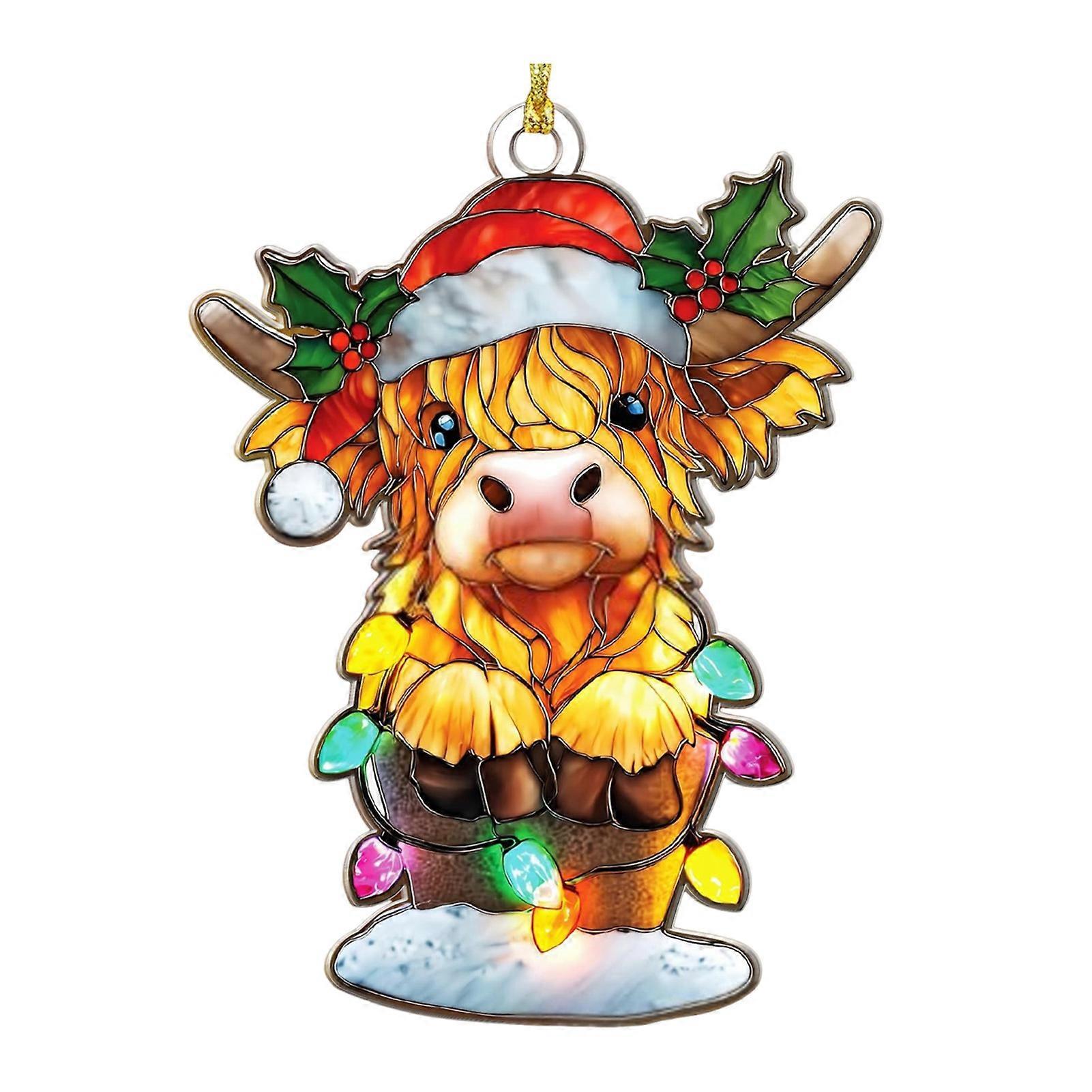 Highland Cow Christmas Ornament Stained Glass Effect Window Hanging Highland Cow Decor Rustic Acrylic Scottish Suncatcher