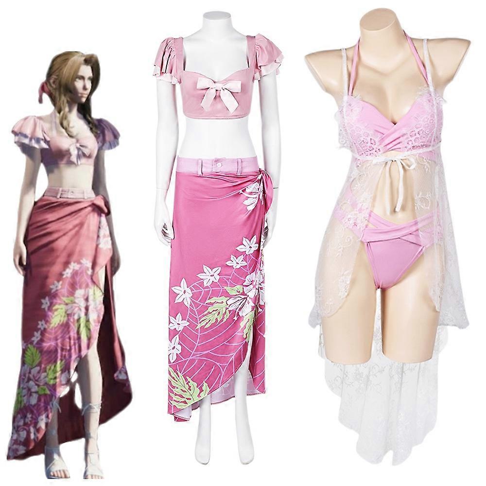 Final Fantasy VII Remake Aerith Cosplay Halloween Carnival Bikini Swimwear Skirt