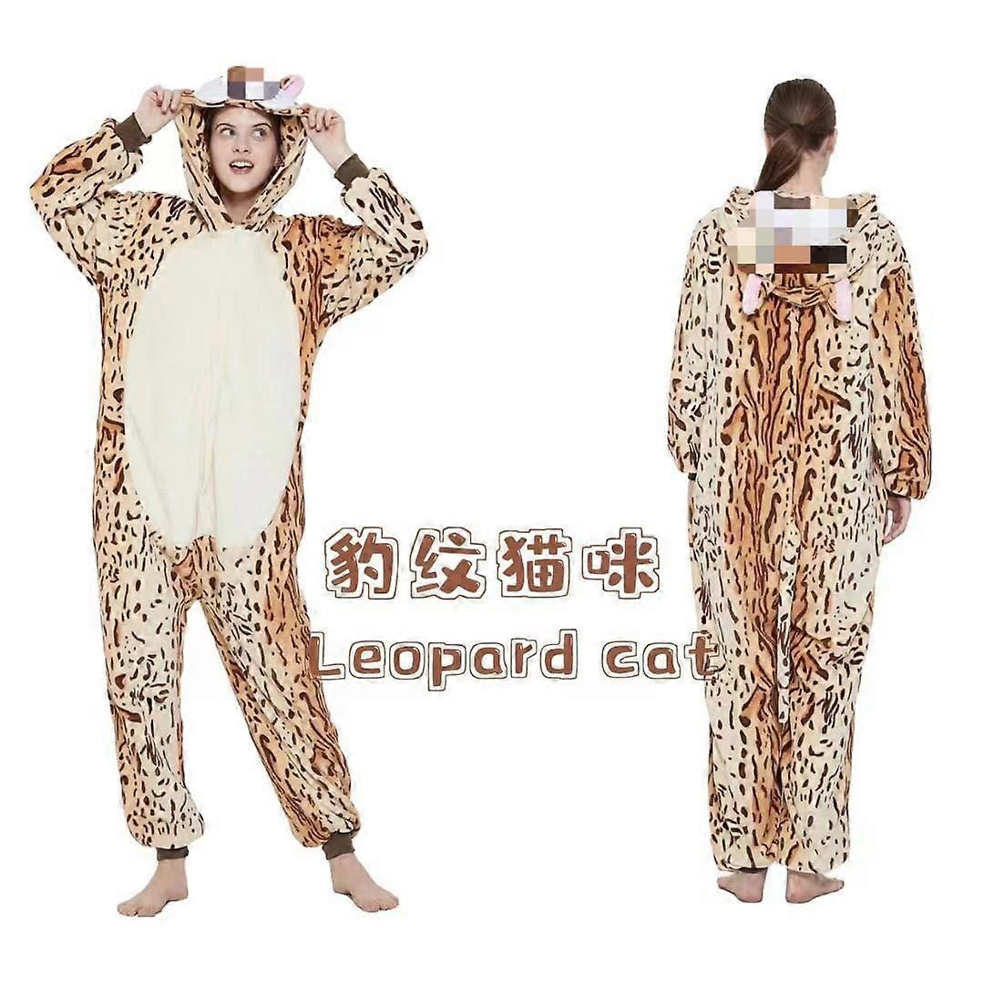 Cartoon leopard print cat parent-child pajamas flannel one-piece warm couple funny home clothes