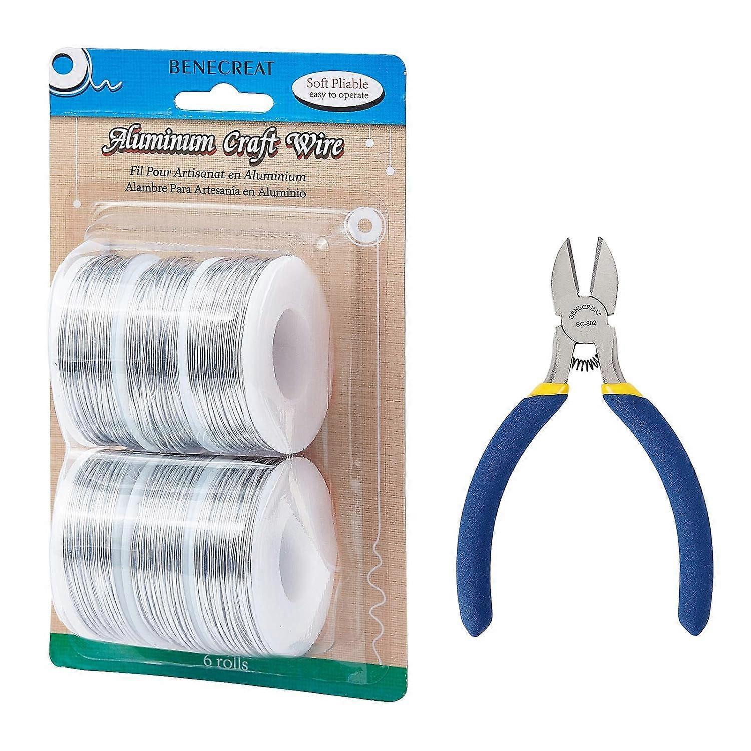 6 Rolls 18 Gauge Aluminum Craft Wire with Side Cutting Plier 450 Feet Jewelry Beading Wire Bendable Metal Wire for Jewelry Making Craft Silver