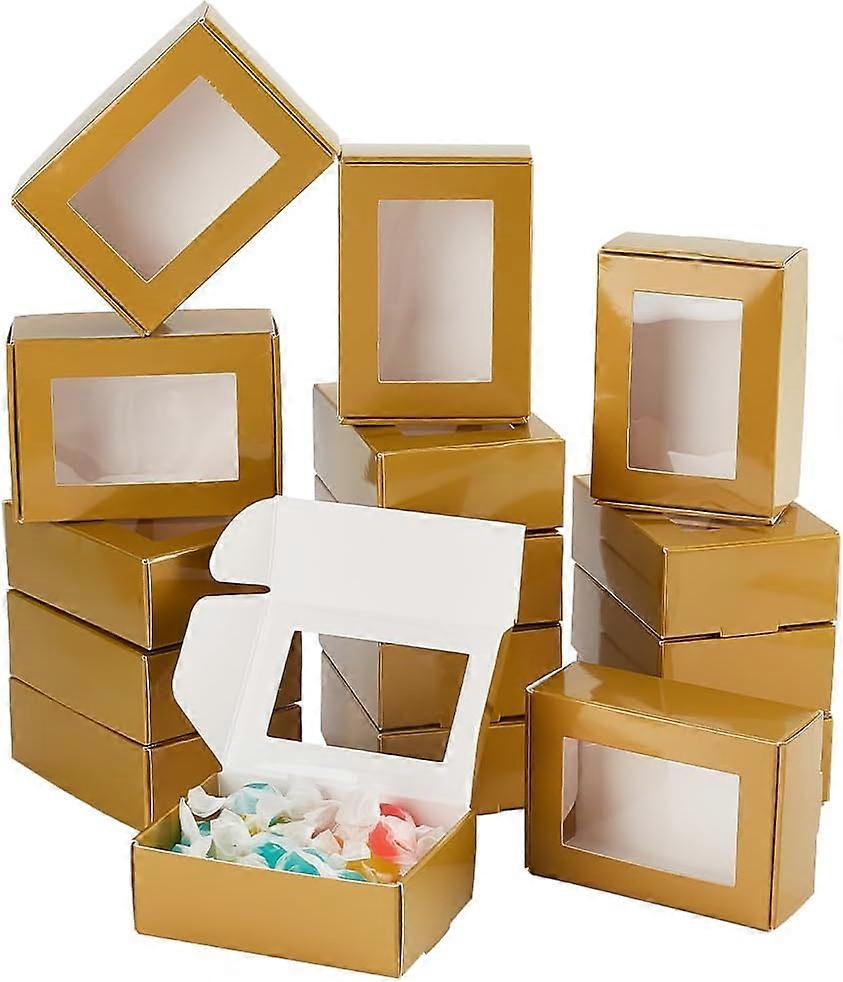20pcs Brown Kraft Cookie Boxes with Window 3.4x2.4x1.2" - Bakery Treat Dessert Donut Packaging for Party, Wedding, Christmas, Halloween, Valentine's