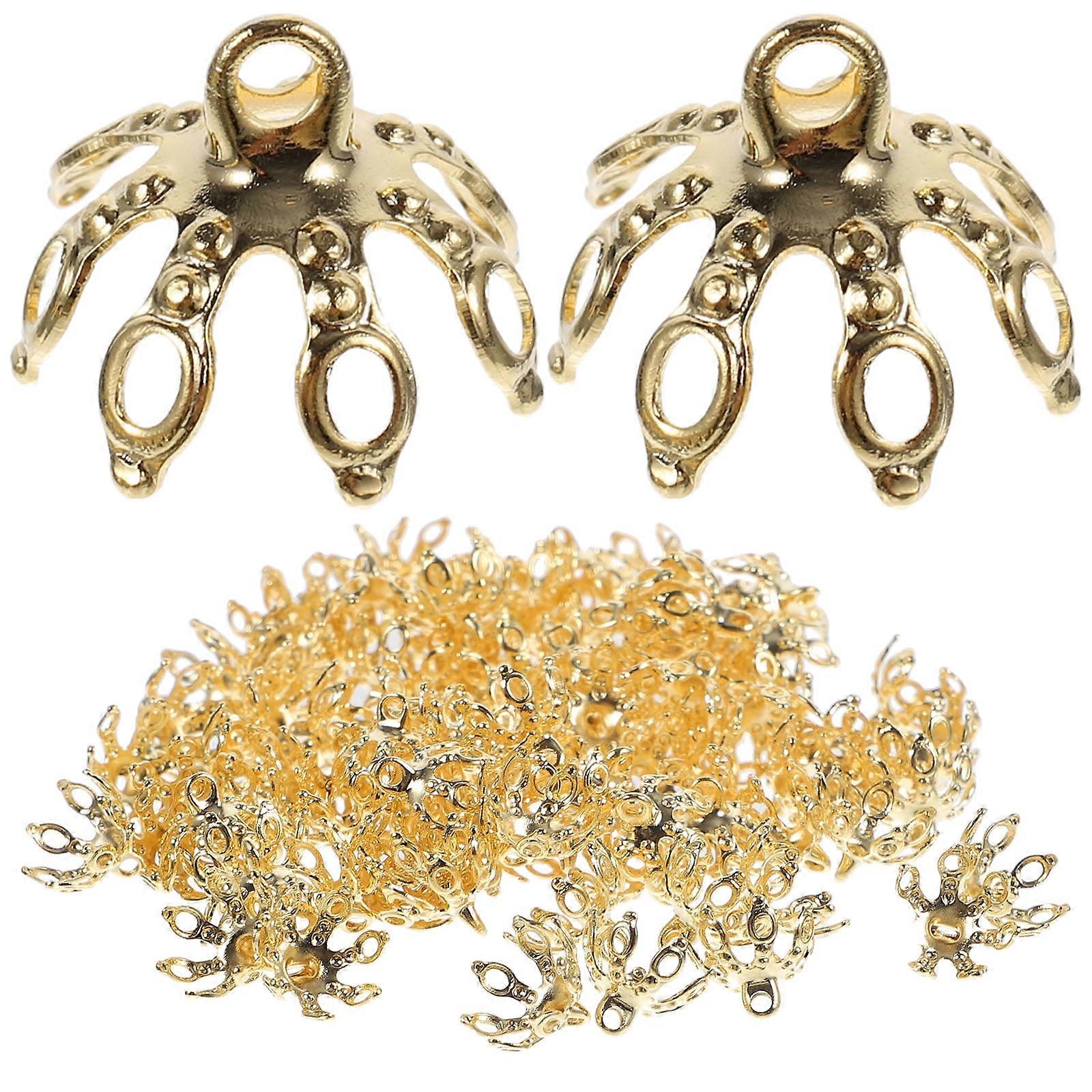 Mizh 100pcs Diy Crafts Beads Caps Hair Accessories Bead End Caps Delicate Metal Bead Caps