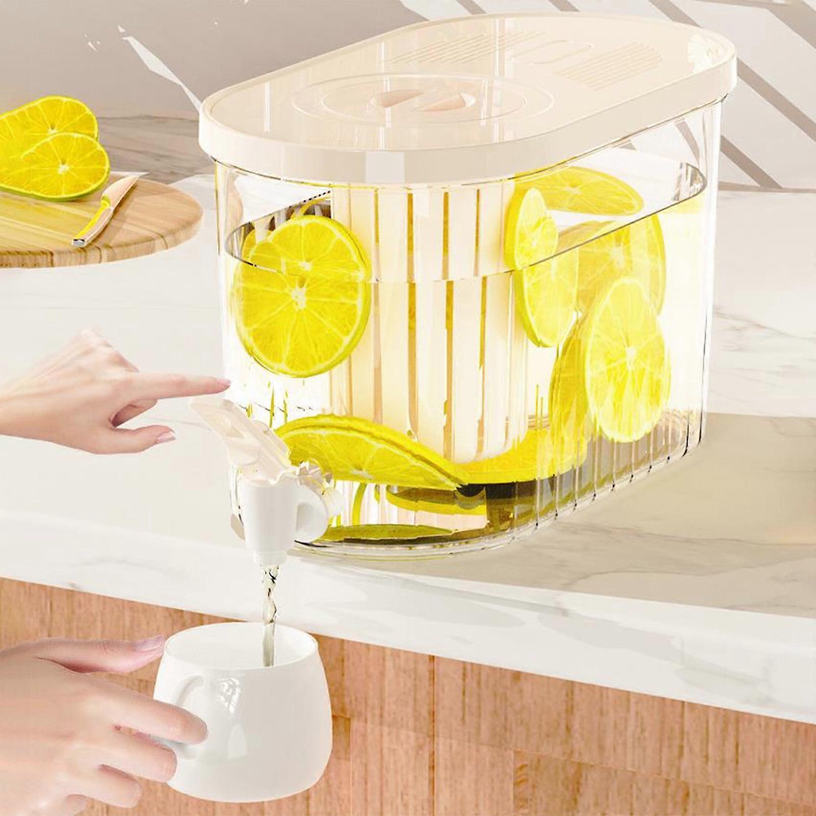 Cold Kettle with Tap, White Drink Dispenser for Fridge, Compatible with Lemonade, Iced Tea, Mixed Beverages, with Lid