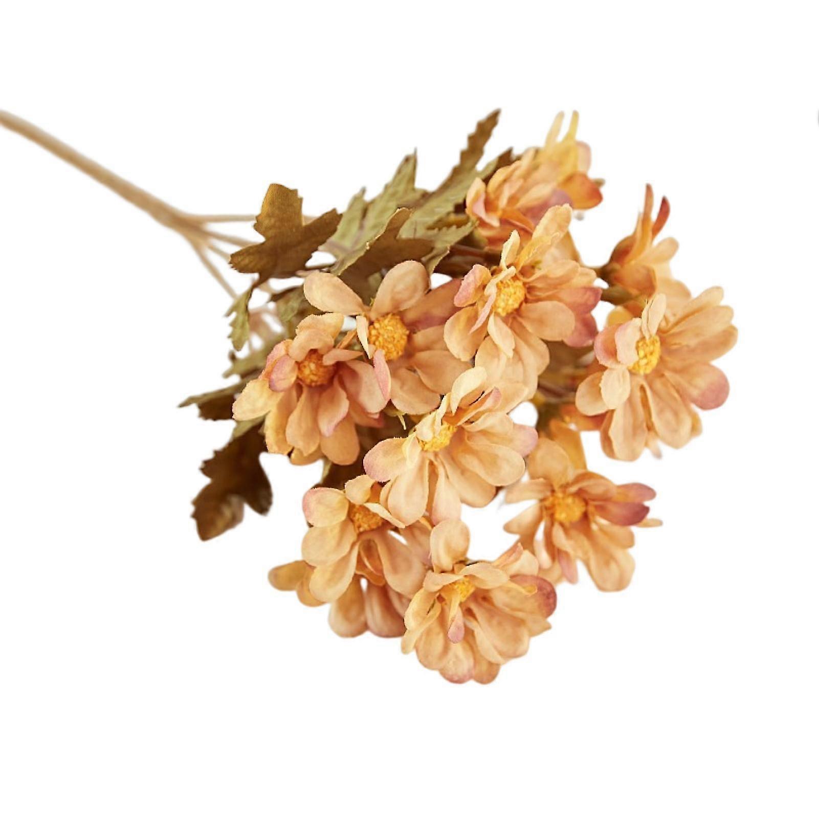 Single Branch Artificial Flower with Green Leaves Decorative Plastic Fake Chrysanthemum Wedding Flower Home Decor-Light Coffee