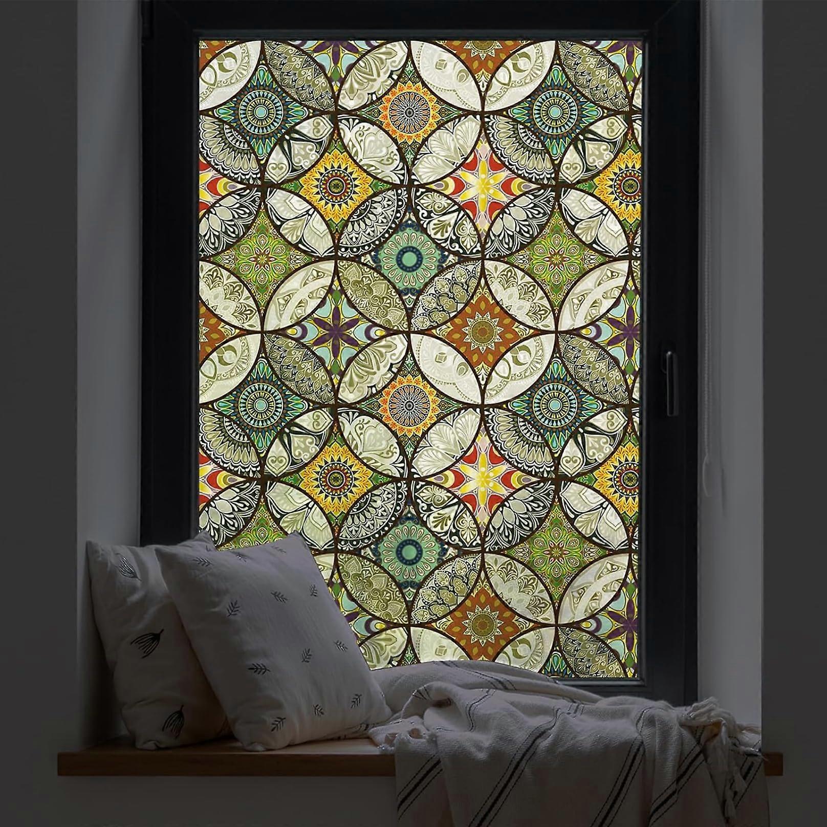 Stained Glass Window Film 78.7x17.7 Inch Static Cling Privacy Film, NonAdhesive Frosted, Heat Insulated and Waterproof