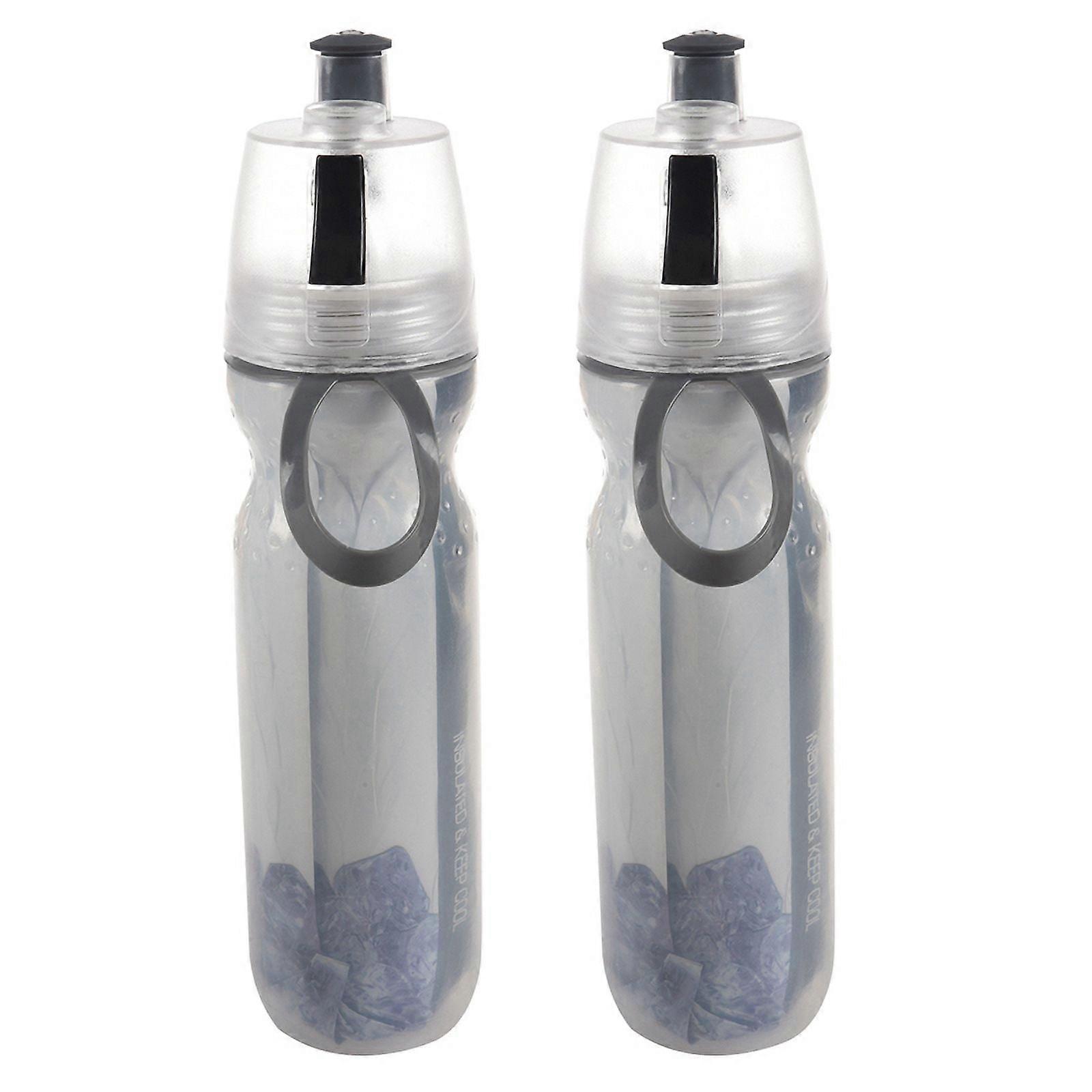 2X Water Bottles Insulated Mist Water Bottle Double Layer Ice Cold Bottle Sports Outdoor Drinking Kettle Black