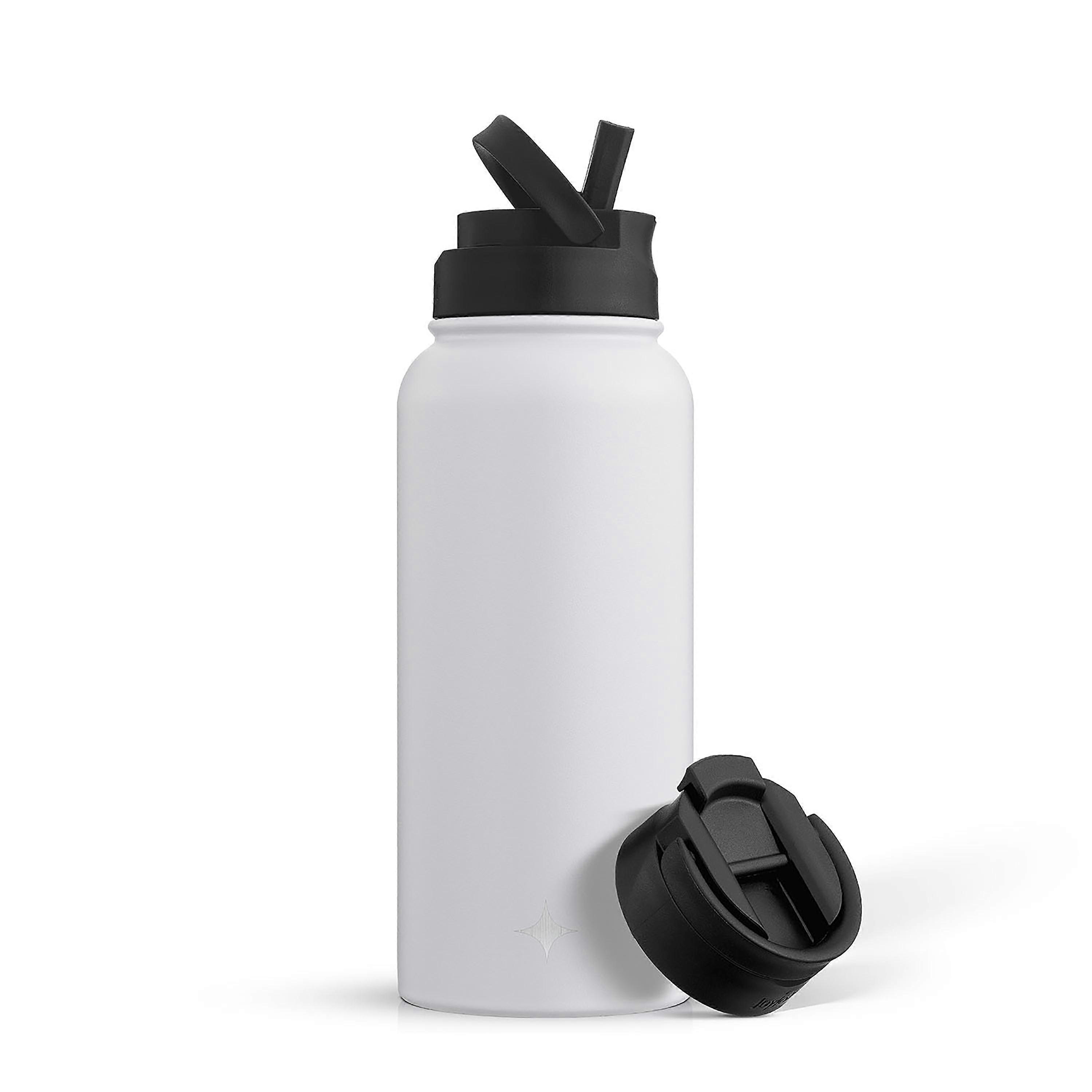 JoyJolt Vacuum Insulated Water Bottle with Flip Lid & Sport Straw Lid - 32 oz - White
