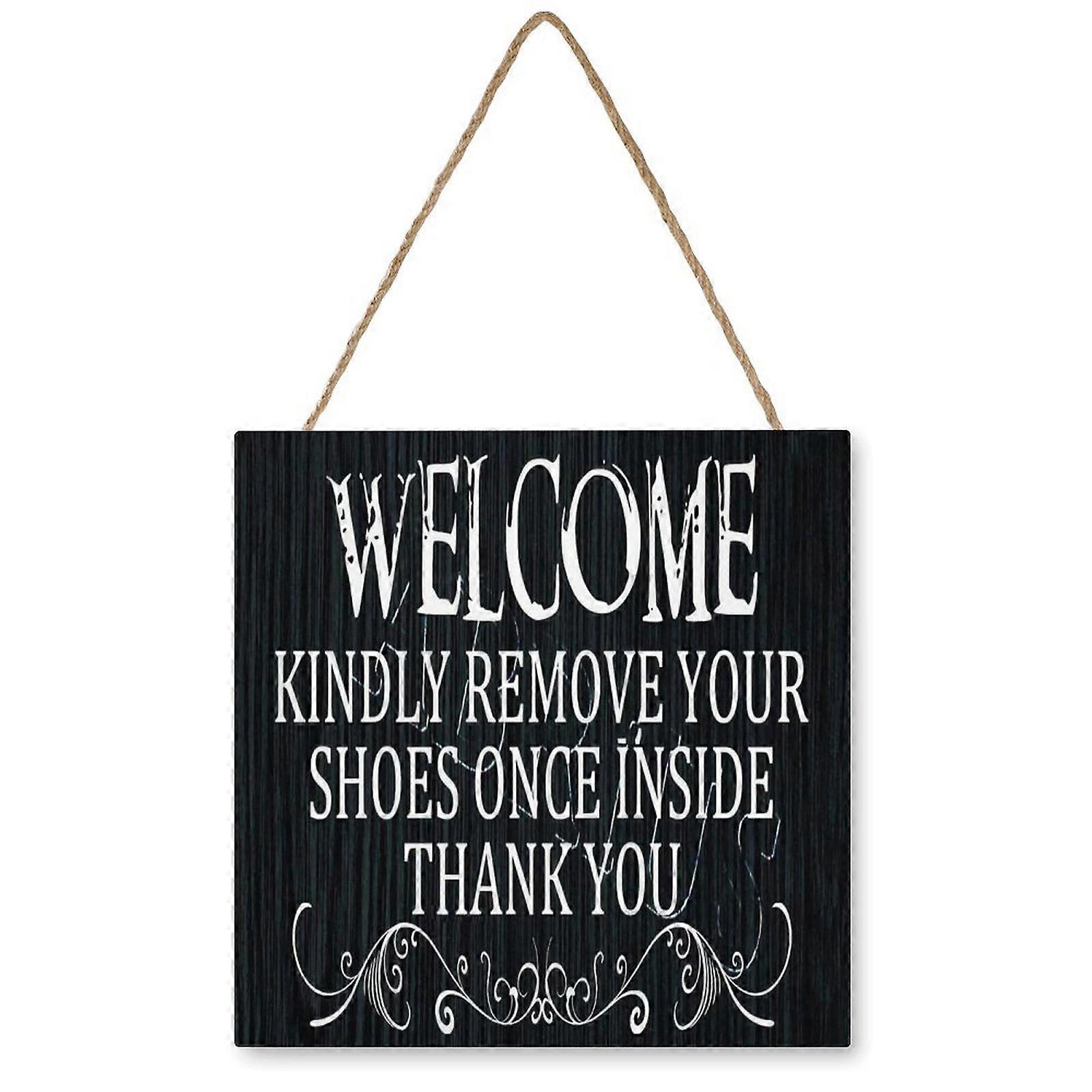 Welcome! Kindly Remove Shoes - Rustic Wooden Sign 12x12 inch, Farmhouse Home Decor, Inspirational Quote Plaque