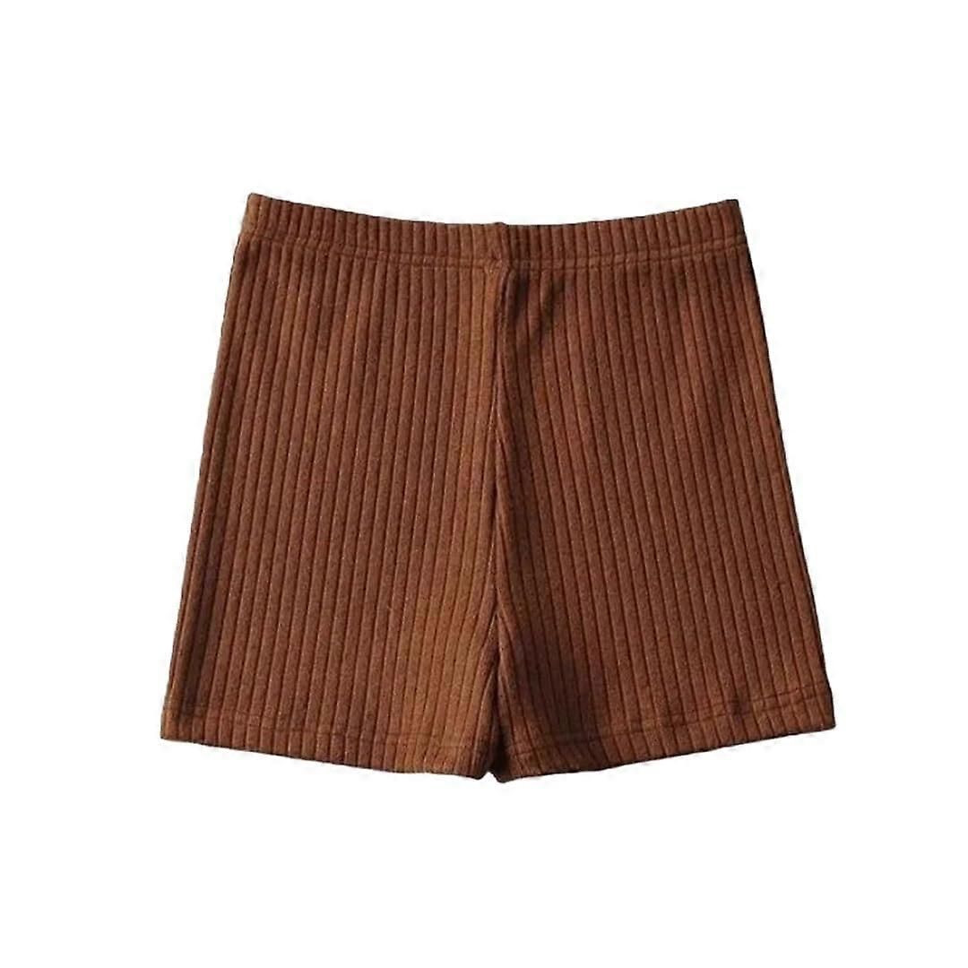 Women's Waist Knit Shorts Solid Color Chocolate Size M Breathable Sports Casual Streetwear Safety Pants