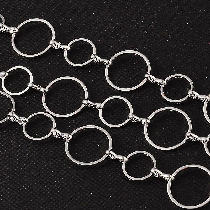 1Roll Brass Handmade Chains Unwelded with Spool Platinum Color Nickel Free Link: 10mm and 14mm in diameter 1mm thick 32.8 Feet(10m)/roll