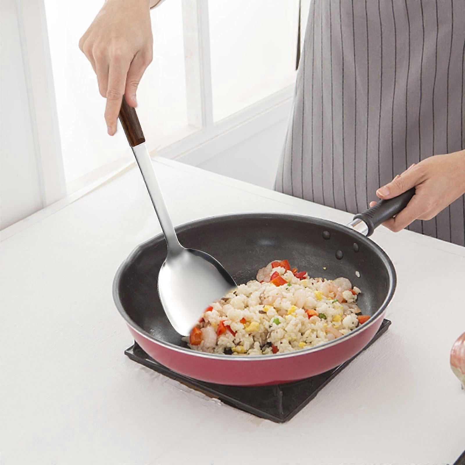 Stainless Steel Spoons with Ancient Wood Handle, Compatible with PAVEOS Kitchen Tools - Soup, Frying, Colander, Congee Spoon Set