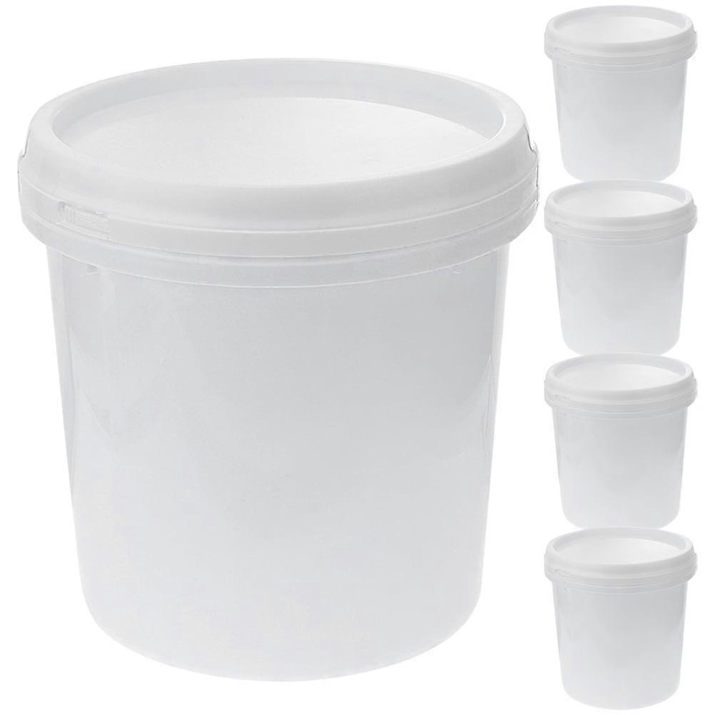 Eease 5 Pack Food Grade Plastic Buckets with Lids 34oz White Bucket with Handle