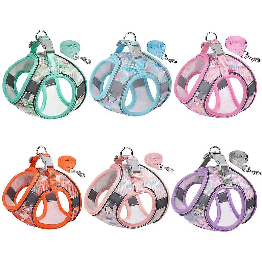 Pretty Comy Pet Cats & Dogs Summer Breathable Mesh Leash Vest Style Print Chest Harness Pet Leash