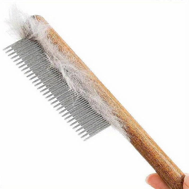 Professional Cat and Dog Grooming Tool - Wooden Handle Slicker Brush for Effective Hair Removal and Detangling