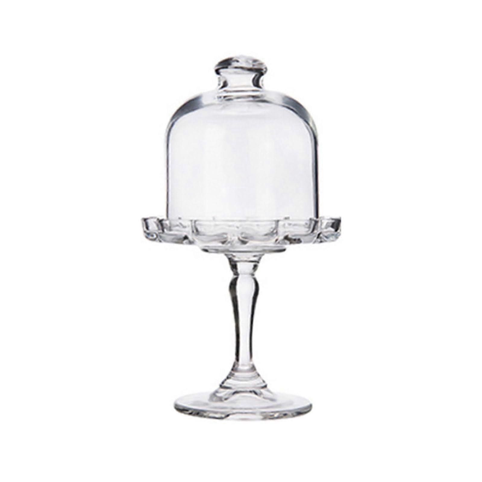 Clear Glass Serving Dish Tall Footed Cupcake Stand With Dome Cover For Displaying Confections And Treats Lace Glass Tray