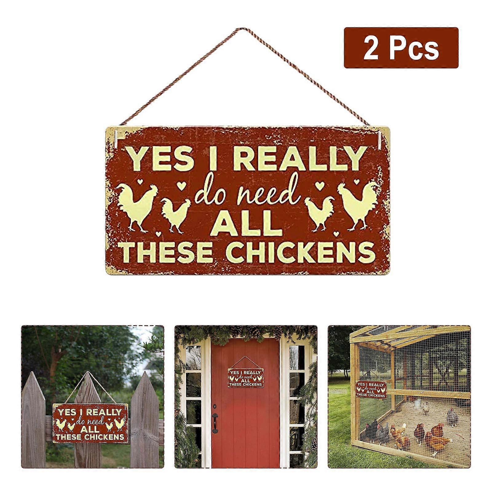 2Pc Funny Farm Wall Decor Signs, Yes I Really Need All These Chickens, Rustic Wood Farmhouse Pendant Decor, Compatible with Farm-Themed Decor