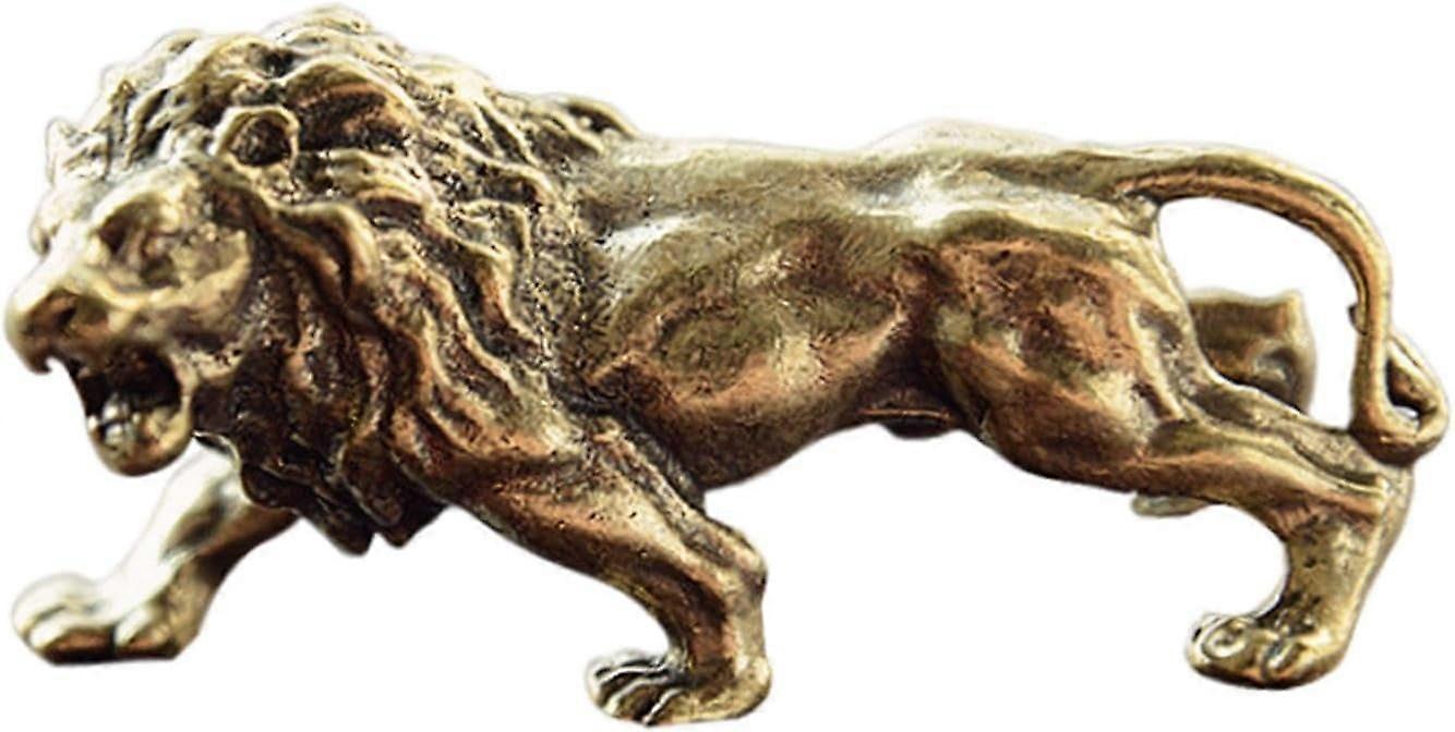 Lion Statues Crafts Copper Miniature Small Accessories Feng Shui Decorative Sculpture Figurines for Desktop Stand Home Study Room Decoration