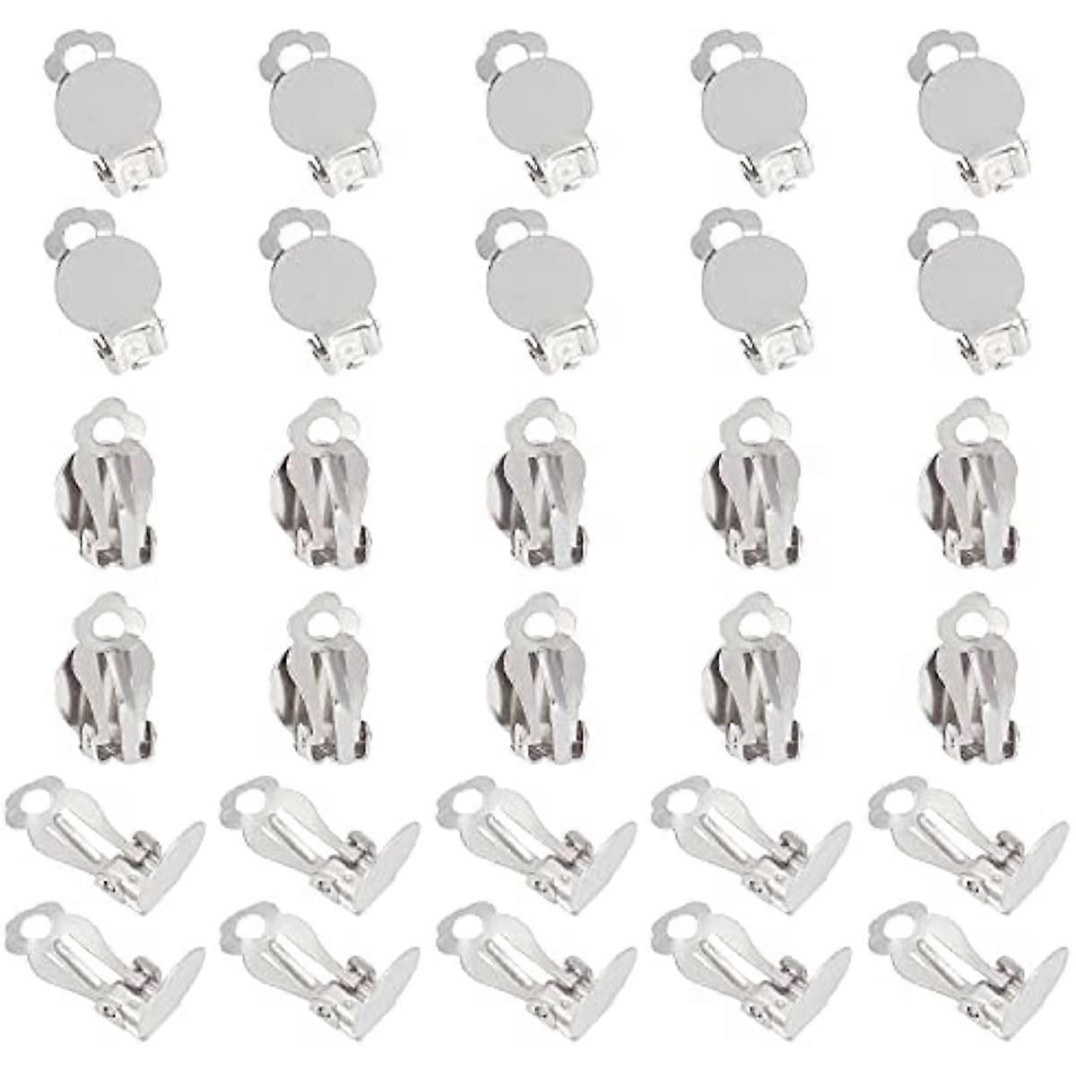 100pcs 316 Stainless Steel Clip-on Earring Findings Tray 10mm Round Flat Back Earring Clips for DIY Non-Pierced Earrings