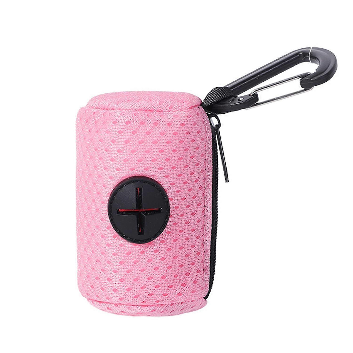 Portable Garbage Bag Dispenser For Dog Waste Bags, Fits Standard Bags, Compact Mesh Carry Case With Zipper Closure, Pink