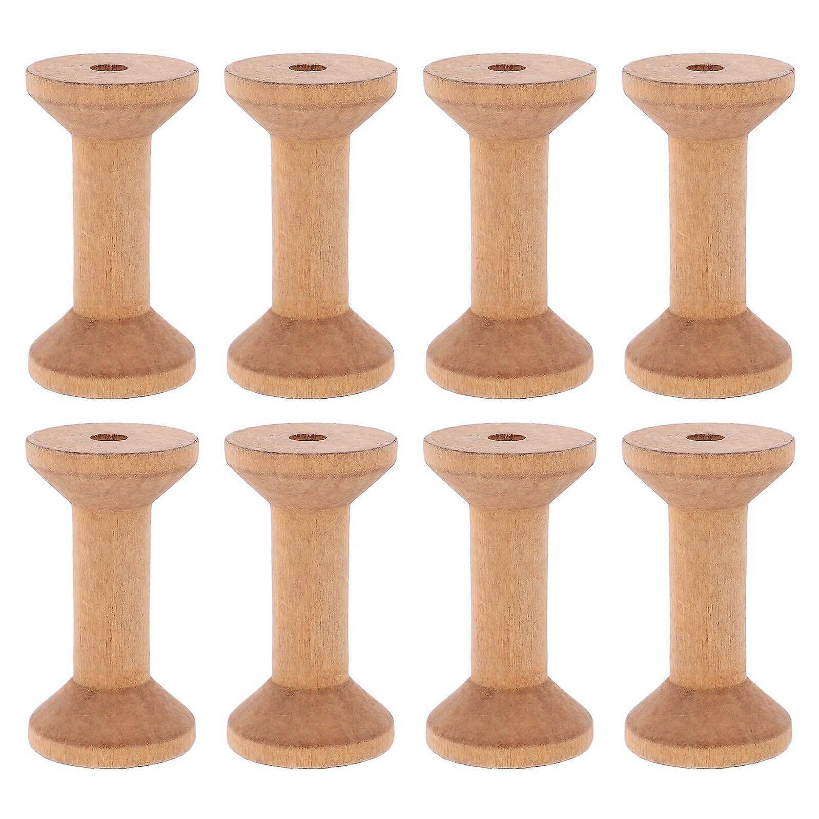 Wooden Sewing Spools Set Of 8 With Center Thread And Ribbon Bobbins For Embroidery And DIY Crafting Khaki
