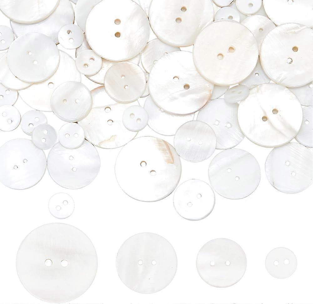 70pcs Shell Buttons 2 Hole 10/16/20/25mm White Genuine Mother of Pearl Flat Round Sewing Buttons for Clothes, Suits, Shirts, Crafts