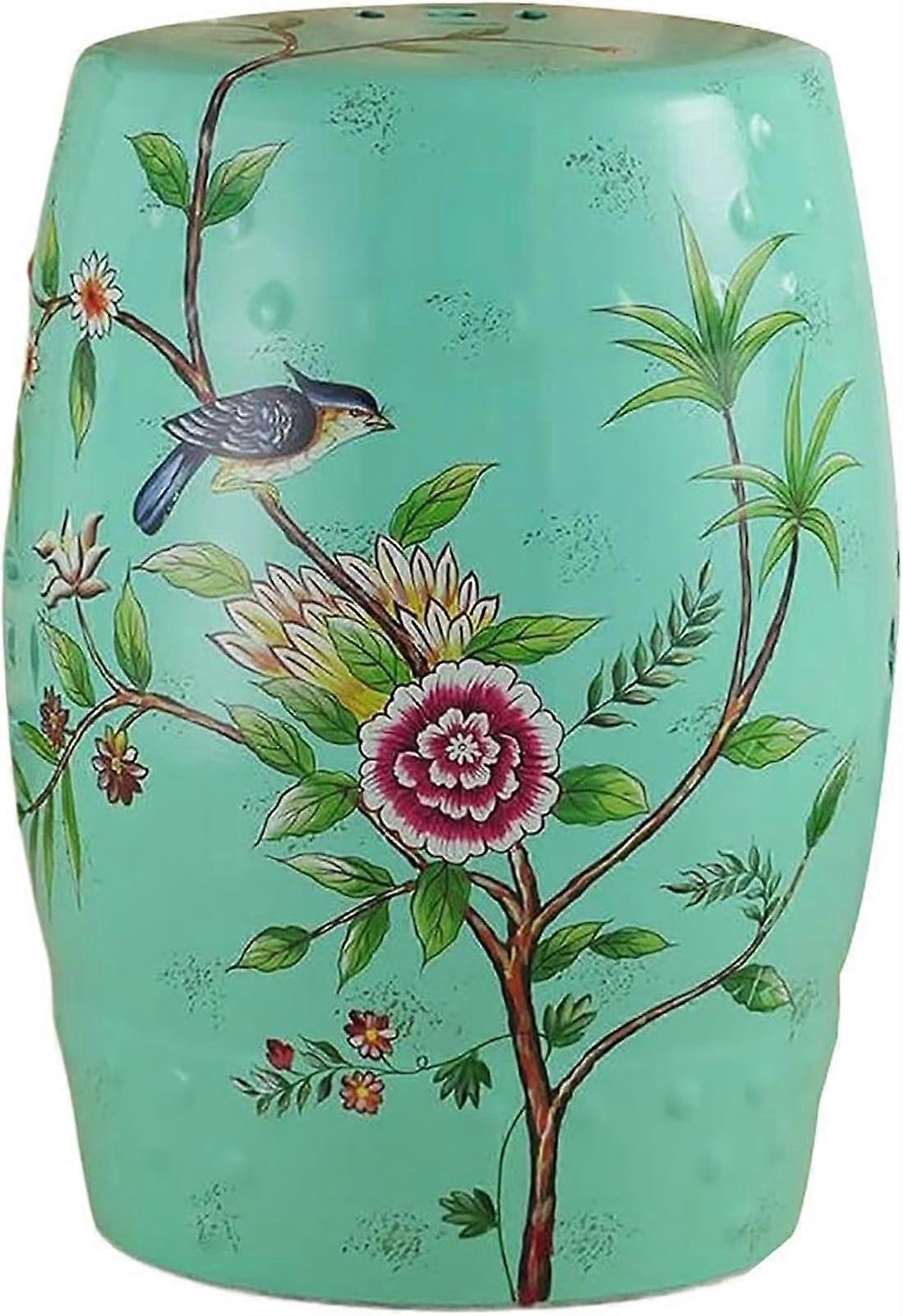 Floral Ceramic Garden Stool, Vintage Porcelain Ottoman Side Table, Indoor Outdoor Coffee Table, 45X28X33CM