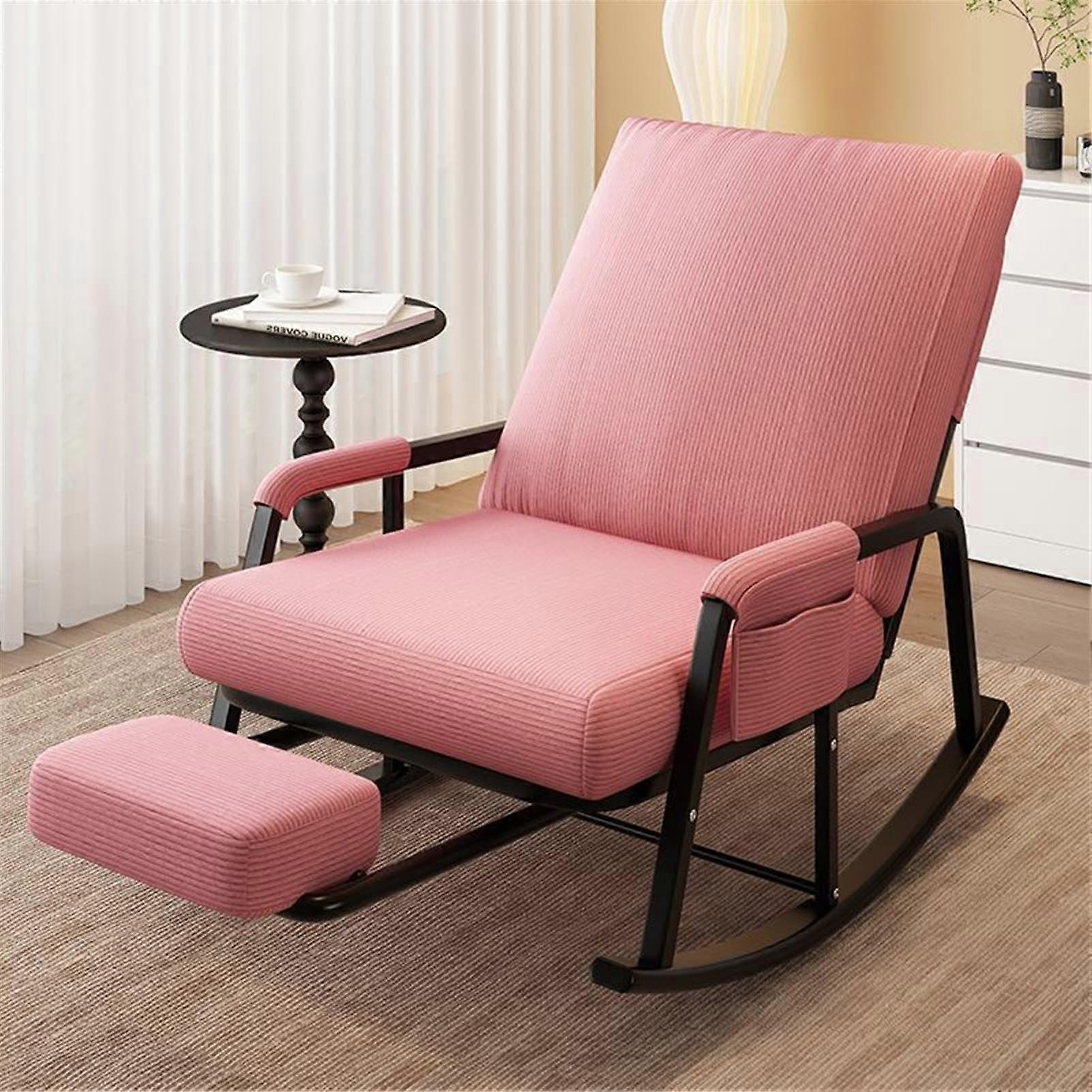 Nursery Rocking Chair Back With Retractable Footrest And Adjustable Back Angle Pink For Living Room And Bedroom