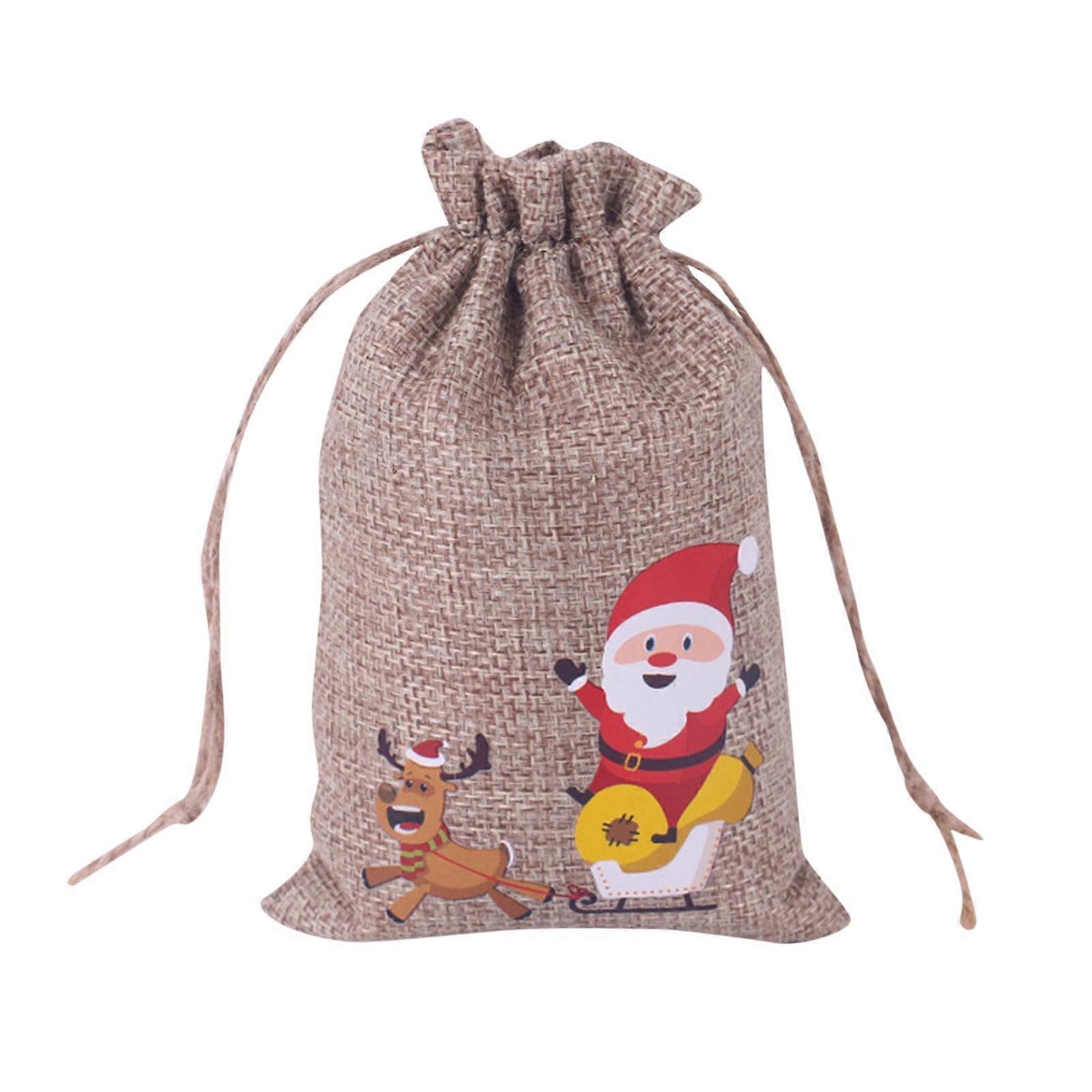 XIUH Packaging Case Christmas Jute Linen Bags, Xmas Jute Linen Drawstring Gift Treat Candy Bag for Xmas Favors (E)