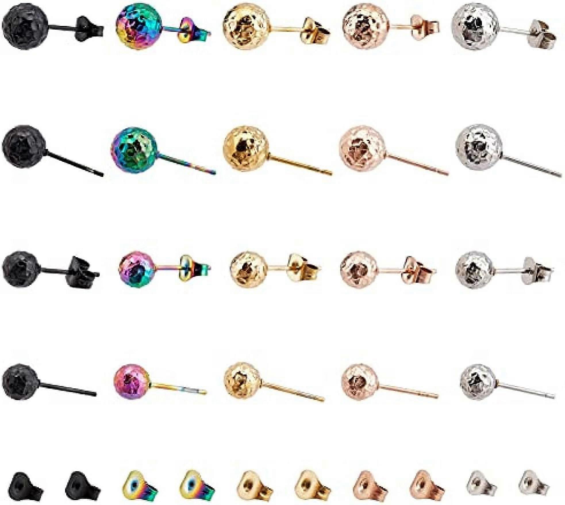 20Pcs 2 Sizes 5 Colors Stainless Steel Textured Ball Earrings with Ear Nuts, Hypoallergenic Stud Findings for DIY Jewelry Making