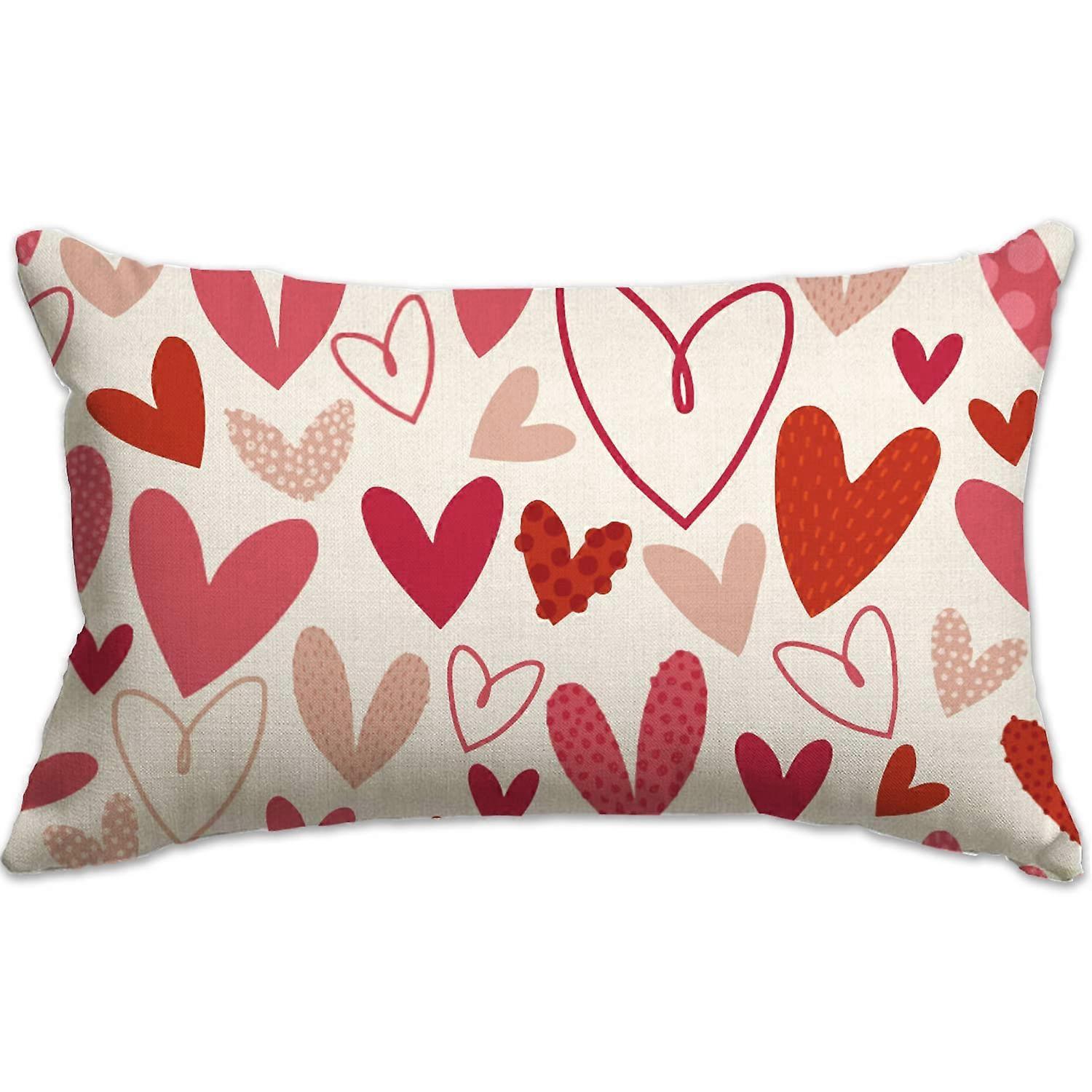 Valentine's Day Cushion Cover 12x20 Inch Pillow Covers With Heart Pattern For Sofa Decor A94