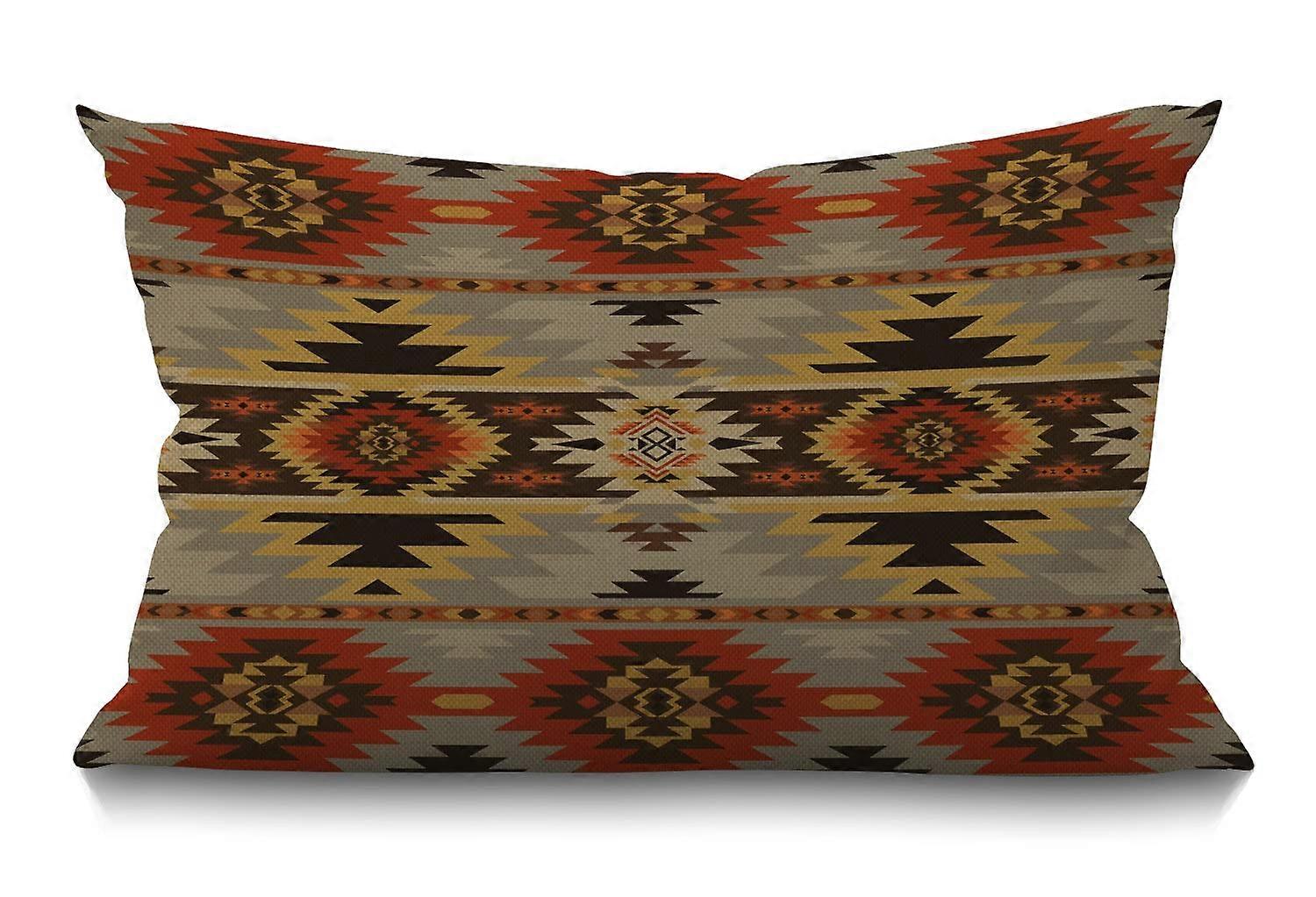 Southwest Print Pillow Cover Aztec Navajo Geometric Pattern Oblong Cotton Linen 12x20 Waist Lumbar Swn18