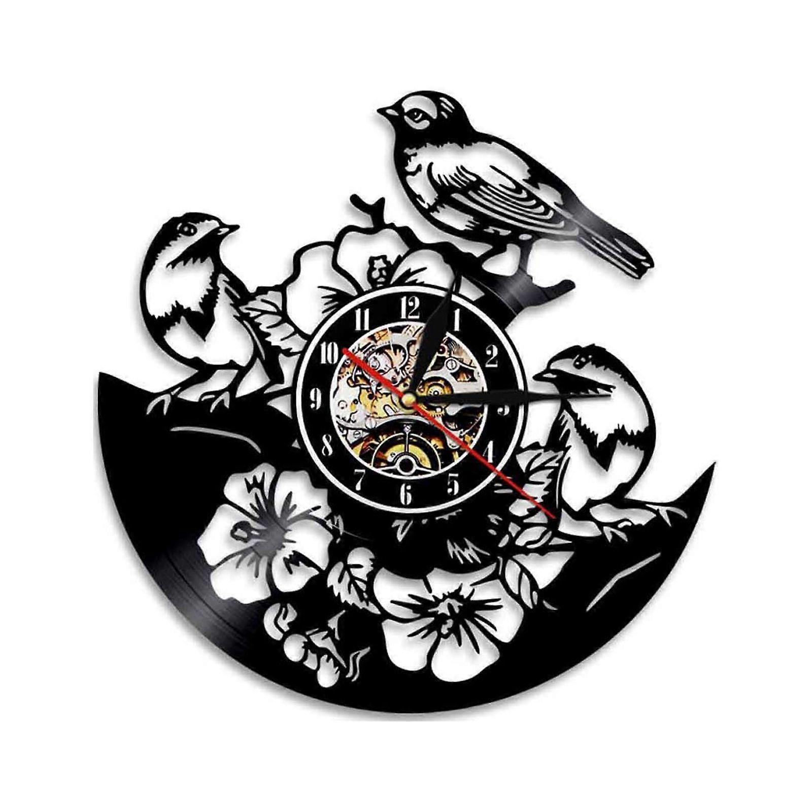 Home Decor Gnobogi Vinyl Record Wall Clock Flower Bird Vintage Wall Home Decor Styling Wall Clock on Clearance