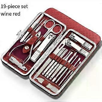Nail art 19 piece set of beauty tools, home manicure, foot trimming, eagle beak pliers, care kit, nail knife, nail clipper set