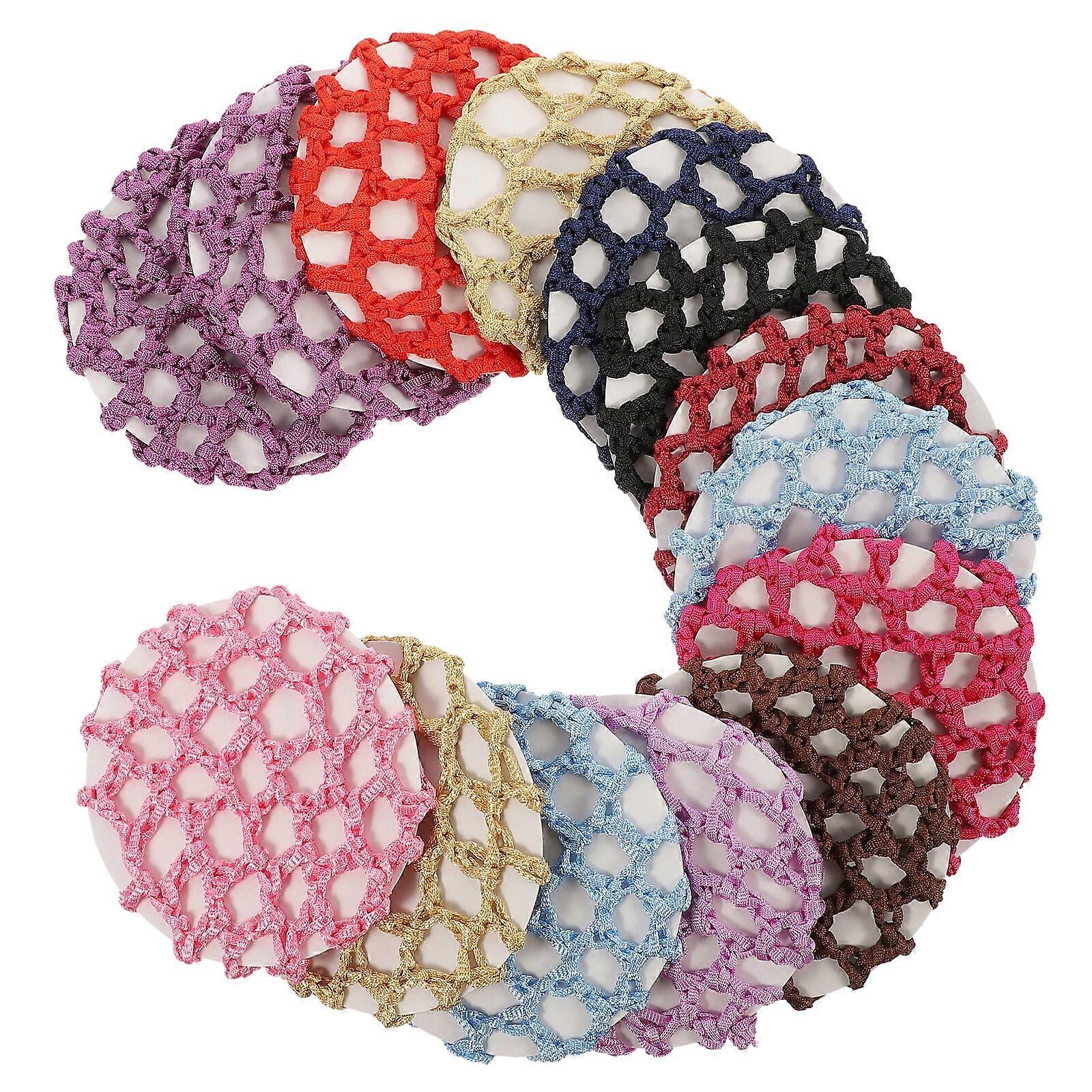 14Pcs Bun Hair Net Crochet Elastic Bun Cover Bun Dancer Hair Net for Dancer Ballet Skating Hair Accessories Mixed Color