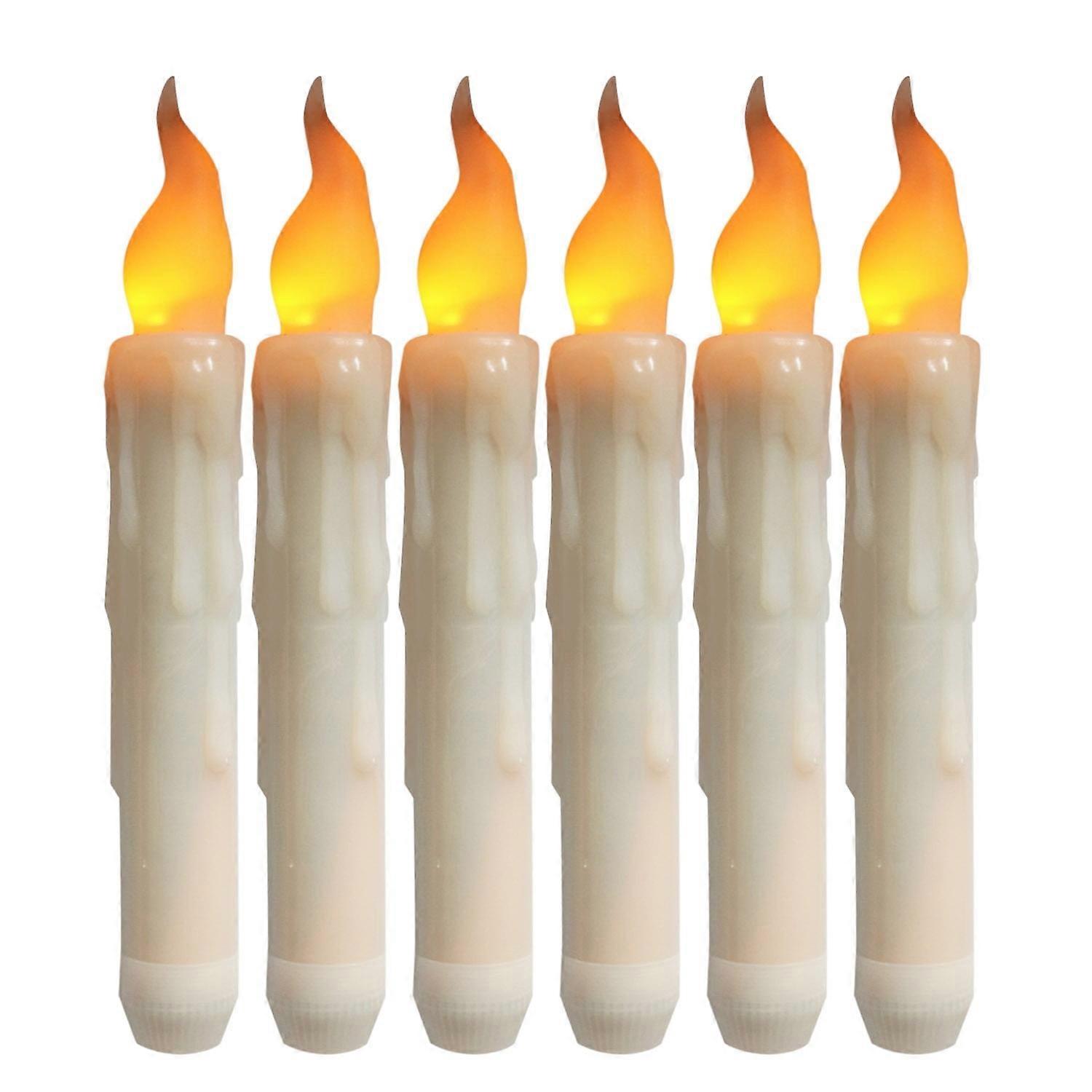 Flameless Function Led Taper Candle 6pcs Battery Operated Fake Wax Dipped Amber Flickering Led Small Candles Decoration