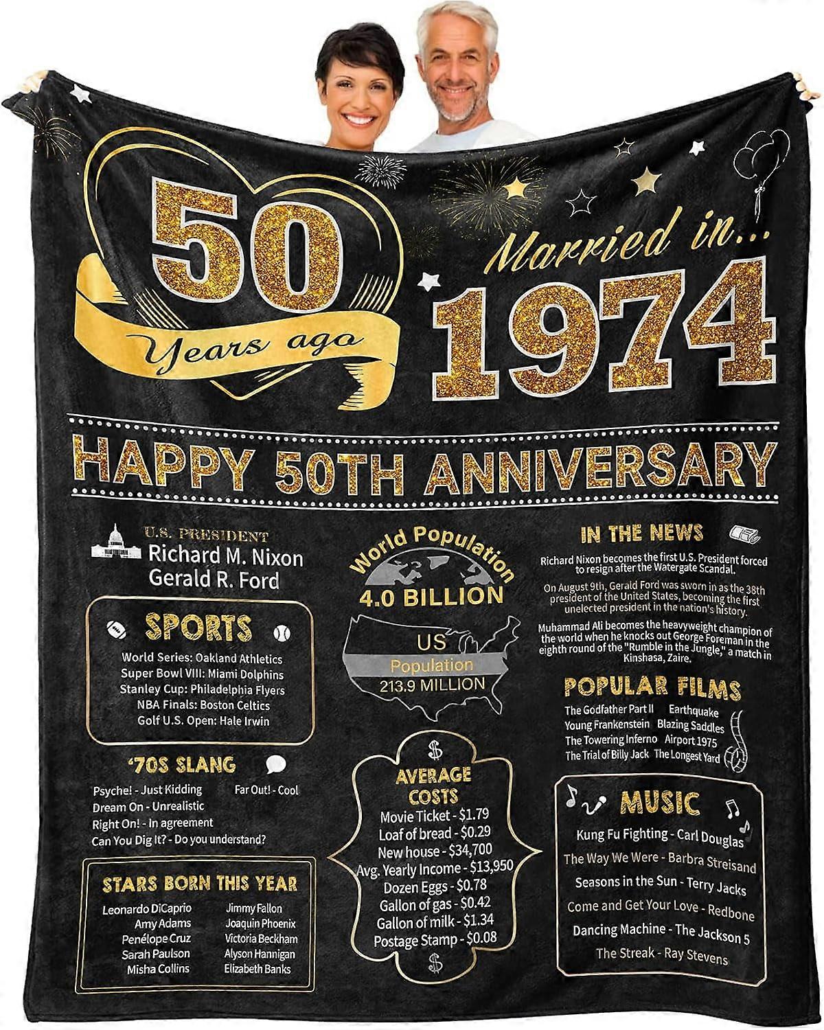 50th Wedding Anniversary Throw Blanket 60x50" - Golden Anniversary Gifts for Couple, Parents, Husband, Wife - 50 Years Marriage Decor