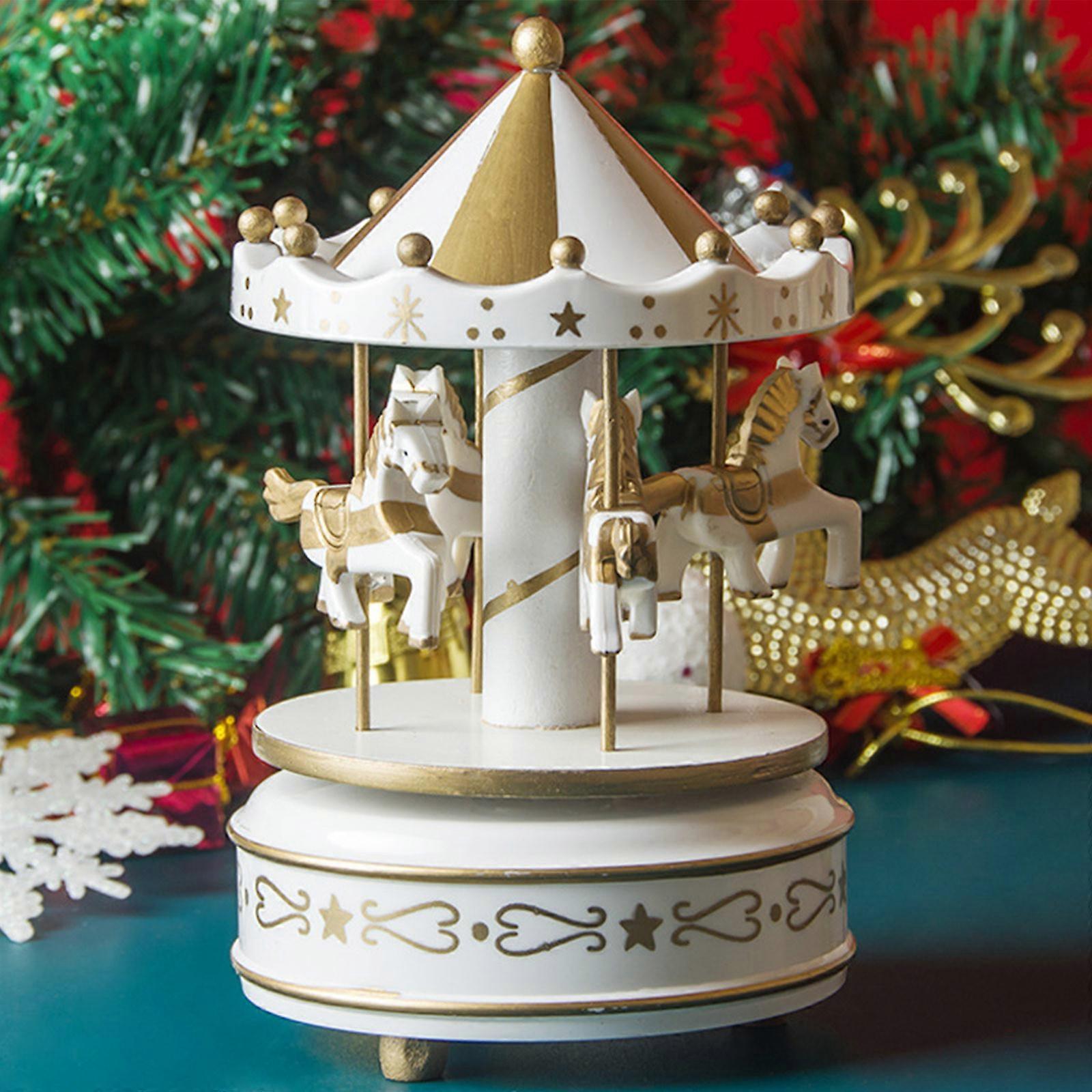 HKUKY Carousel Wooden Music Box Birthday Gift Children's Home Creative Ornaments