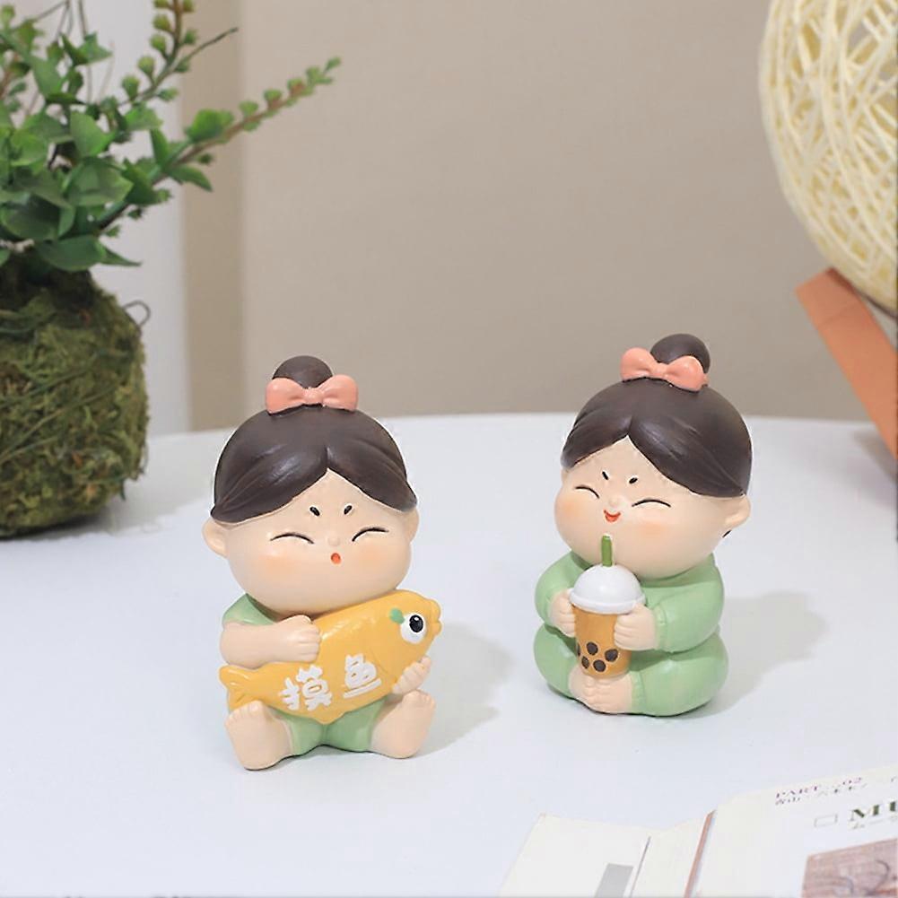 Set of 2 Cute Resin Knick-knacks Resin Crafts Home Desktop Car Decoration Small Dolls Interior Decor Desktop Ornament