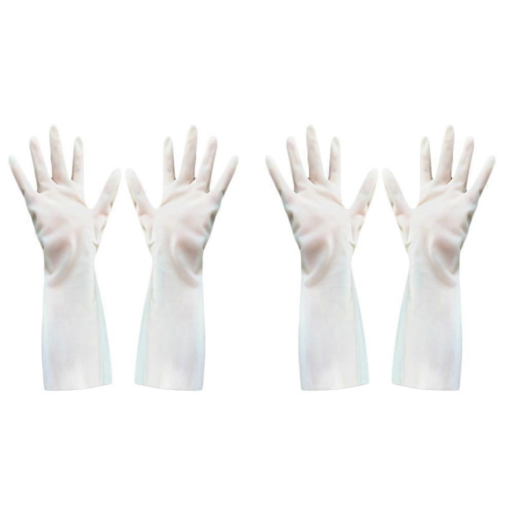 2 Pairs of Rubber Dishwashing Gloves Waterproof Kitchen Cleaning Gloves Hand Protector Glove - Size S (White)